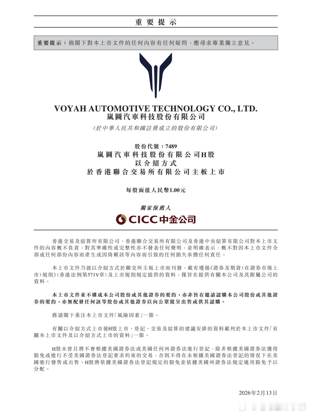 岚图汽车(07489.HK)预计于 3 月 19 日在香港联交所上市