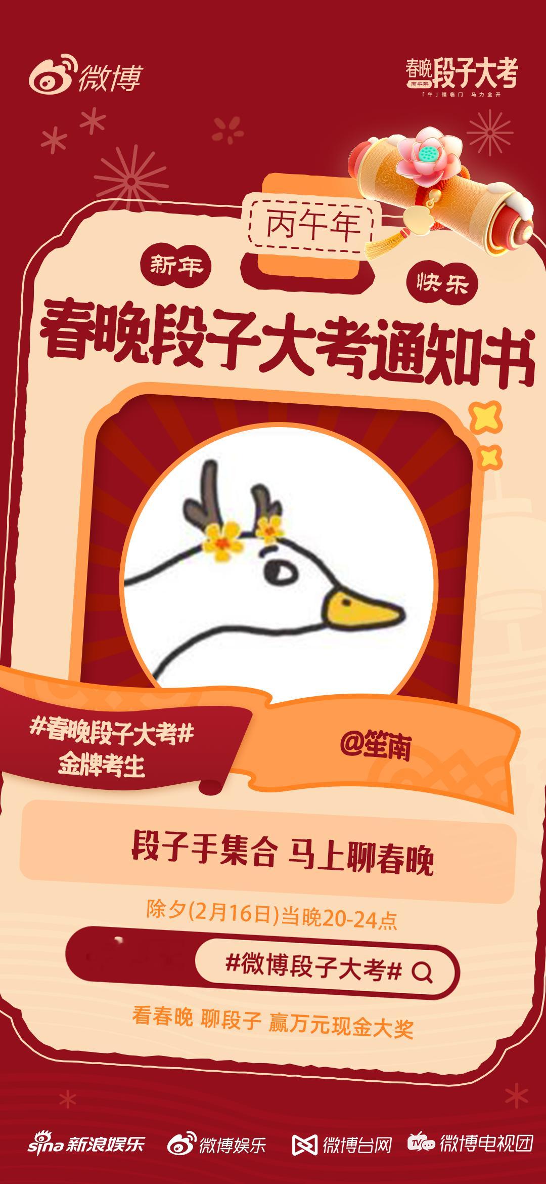 春晚段子大考活动开启!段子组长前来报道!除夕晚上20点正式开考,春晚我们不见不散