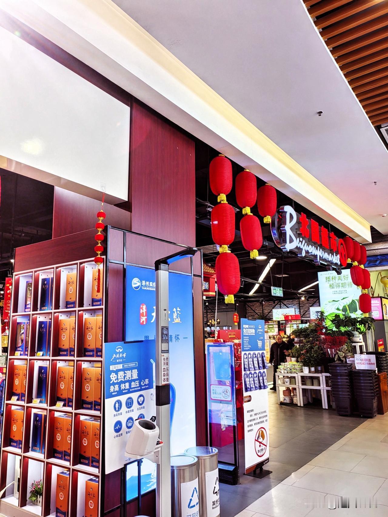 昨天去了北国超市, 超市装扮一新。 火红的灯笼挂起来, 处处洋溢着新年的气氛。