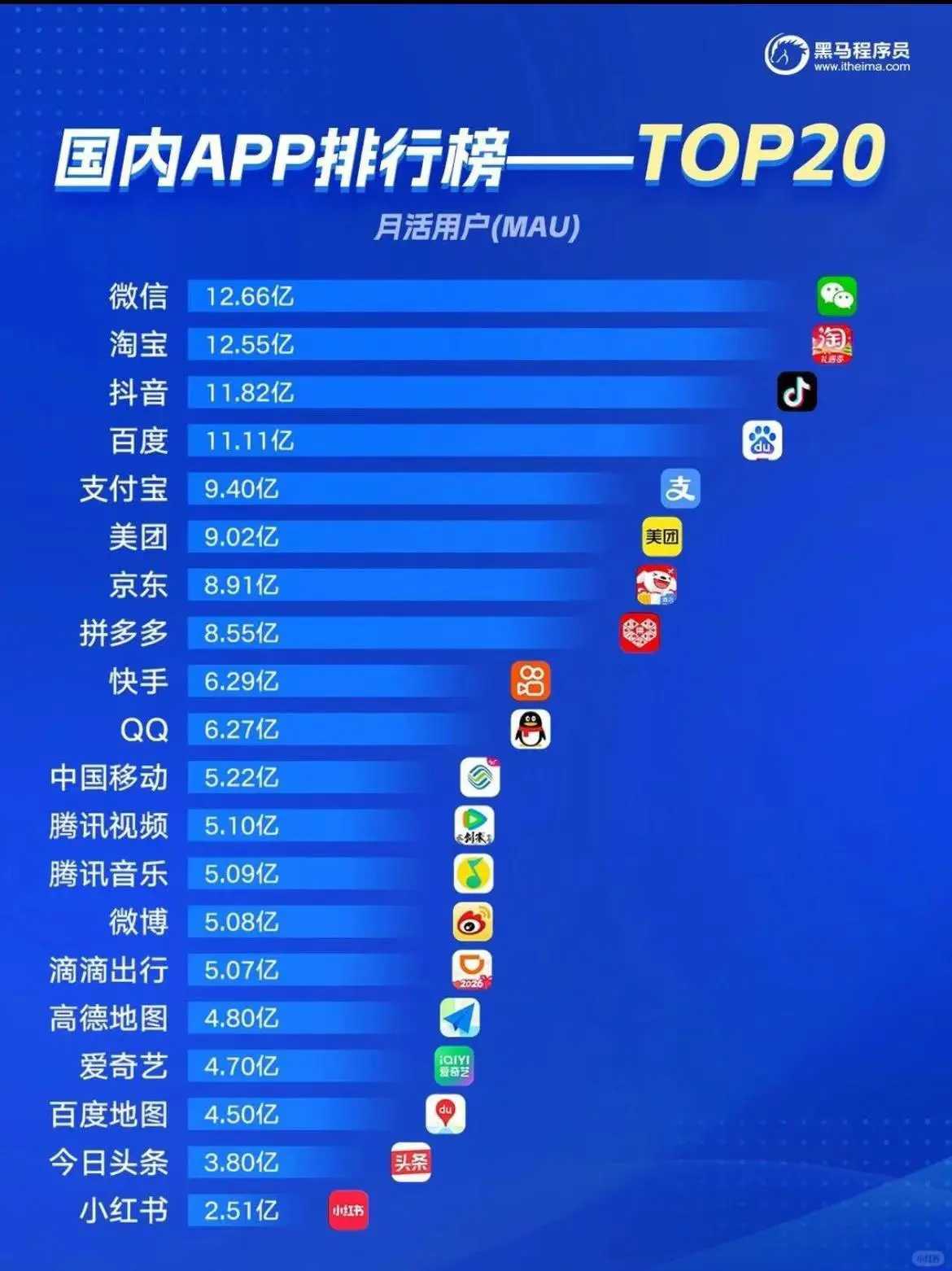 各大APP月活量排行榜