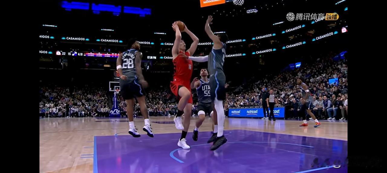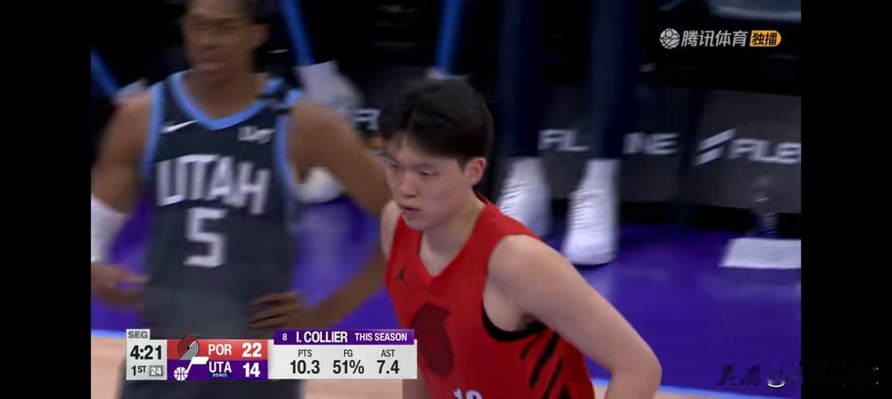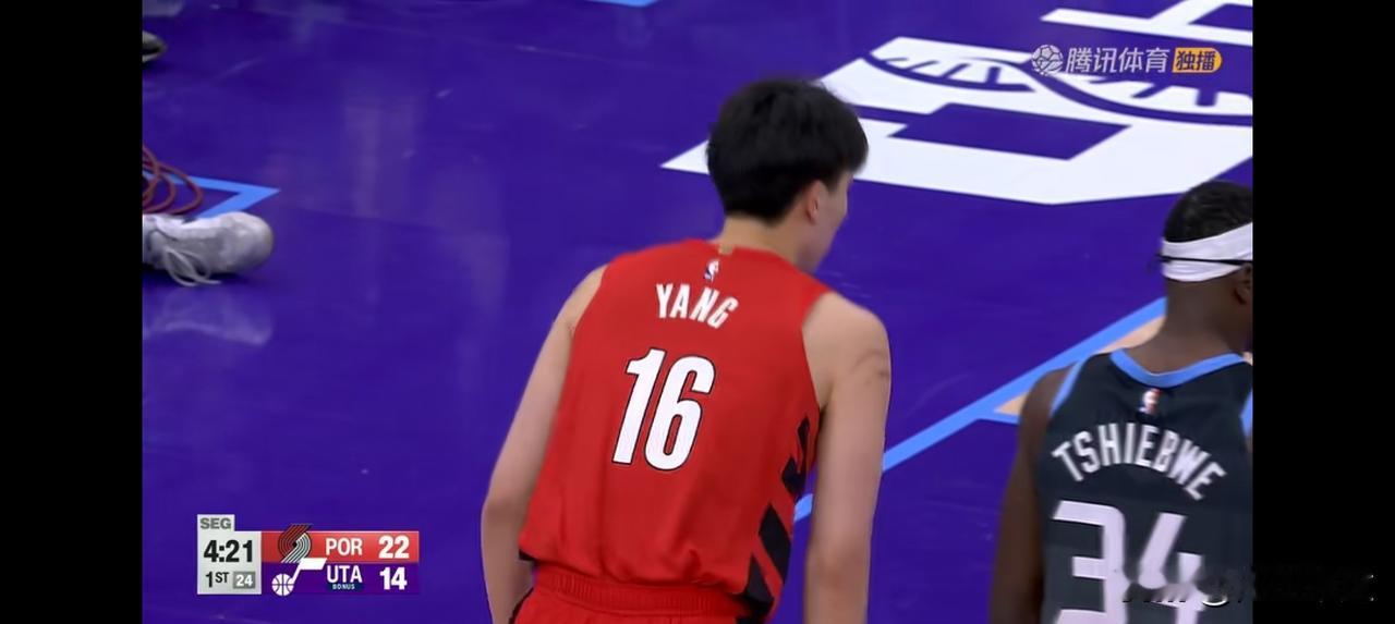 杨瀚森首节4分多钟就得到上场机会,上场就大步一条龙杀入篮下,造成爵士球员犯规!爵士这个球竟然挑战了!爵士挑战失败,浪费了一个挑战名额,杨瀚森轻松两罚全中! 杨瀚森首节仅上场2分钟,得到2分!领到一次犯规! 罗威今天背靠背不打,看杨瀚森会不会接下来获得更多的机会!