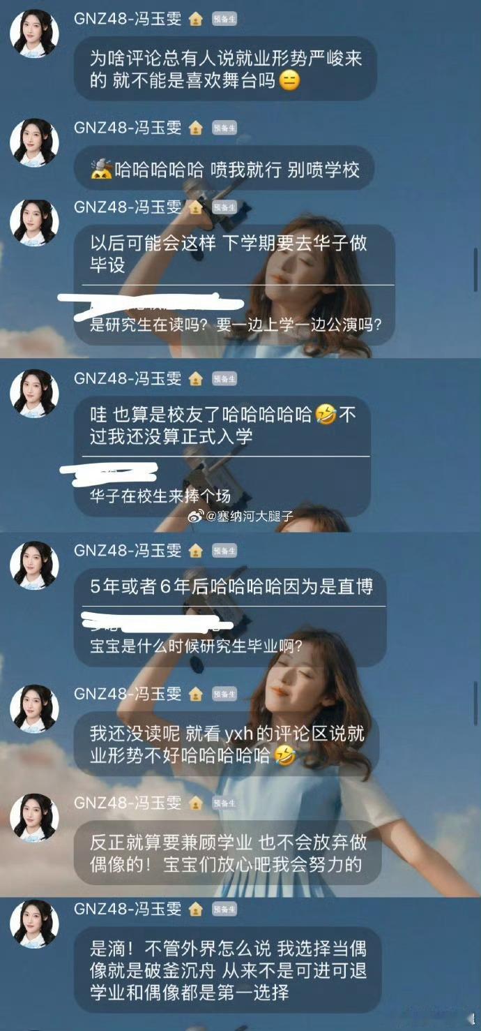 冯玉雯学历是本科就读大连理工,研究生是清华大学化工专业,据说研究生还是直博的,丝芭学历最高的人出现了!!学历和偶像都是第一选择,好酷吧
