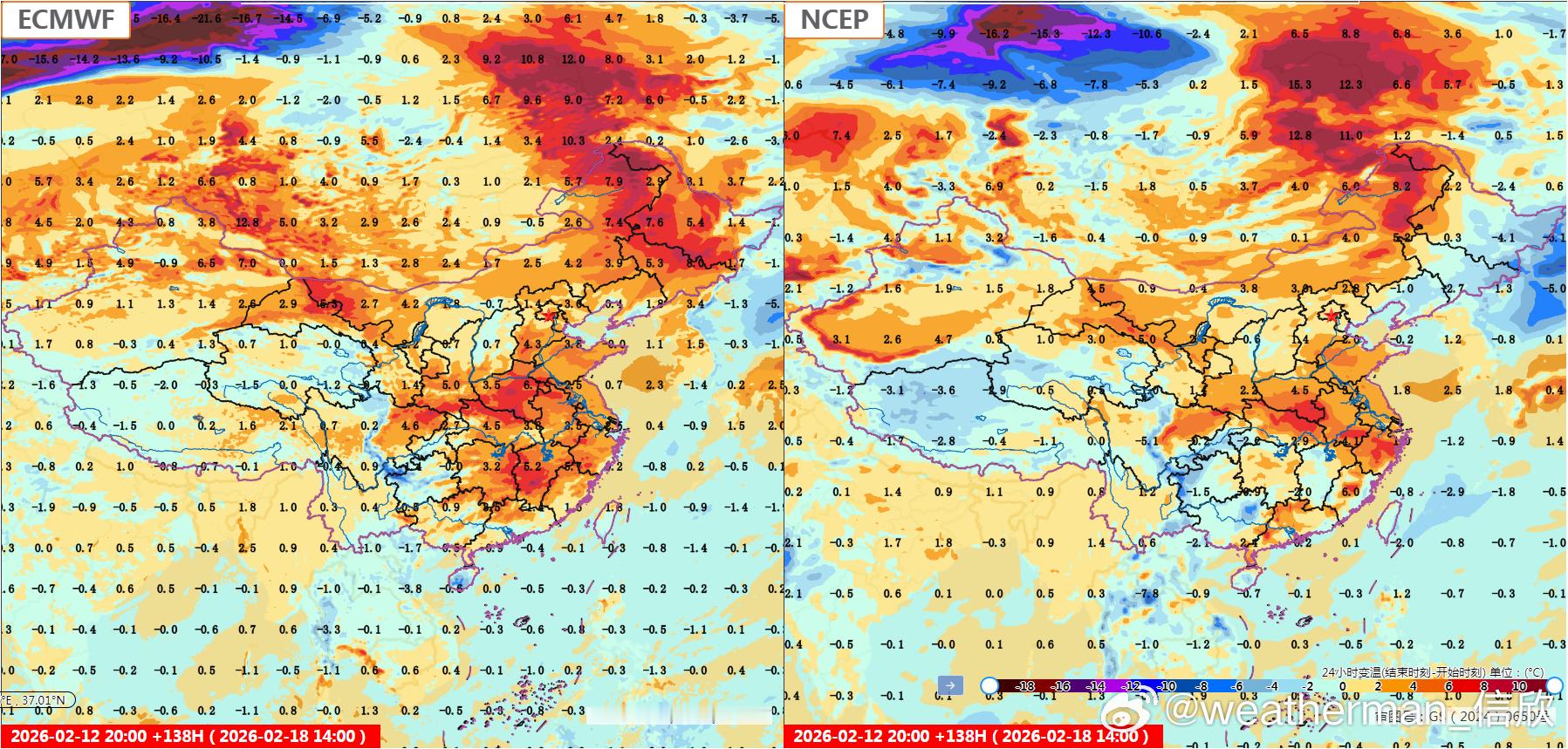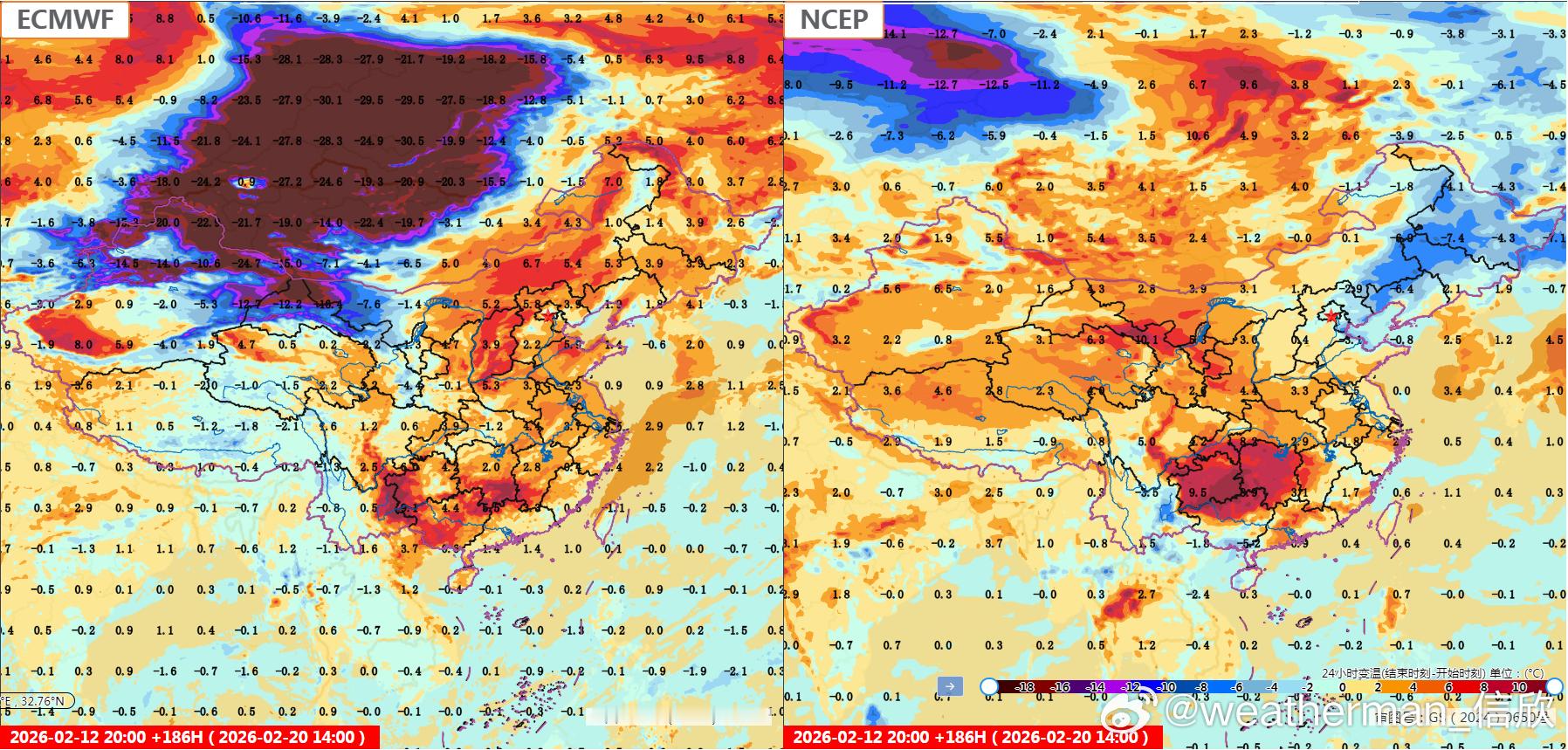 【春节假期气温展望】目前数值预报对假期开始的降温,分歧很小。15日强降温主要在长江以北,16日强降温重点在江南。17日冷空气下到华南,实力减弱,降温不会太强。18-20日我国大部地区升温。但20日新疆一带,模式预报反差很大。欧洲报有寒潮影响,美国报冷空气主体偏北。
