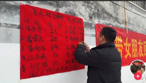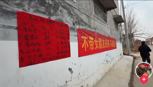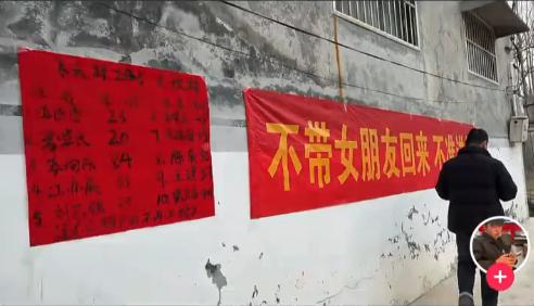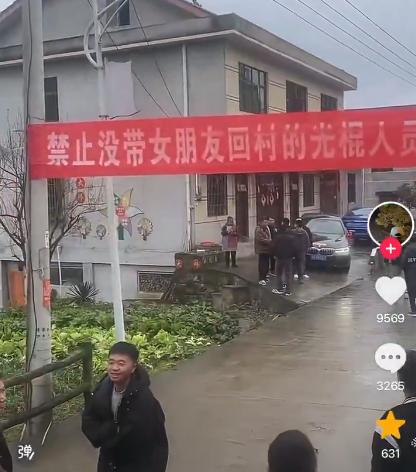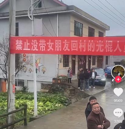 “为了找对象,煞费苦心” 2月10日,贵州黔东南大坪村入口处的横幅上写着:“禁止没带女童的光棍人员回村过年” 2月9日,贵州某村入口处的横幅上写着:“不带女童回来不准进村” 村委会发短信说:“光棍人员不准回家,村口有工作人员值班” 2月10日,河南飞天村的入口处也悬挂了“不带女朋友回来不准进村”的横幅,墙上还张贴着一个“光棍榜”排行榜显示,该村“光棍”最小的20岁,最大的84岁……