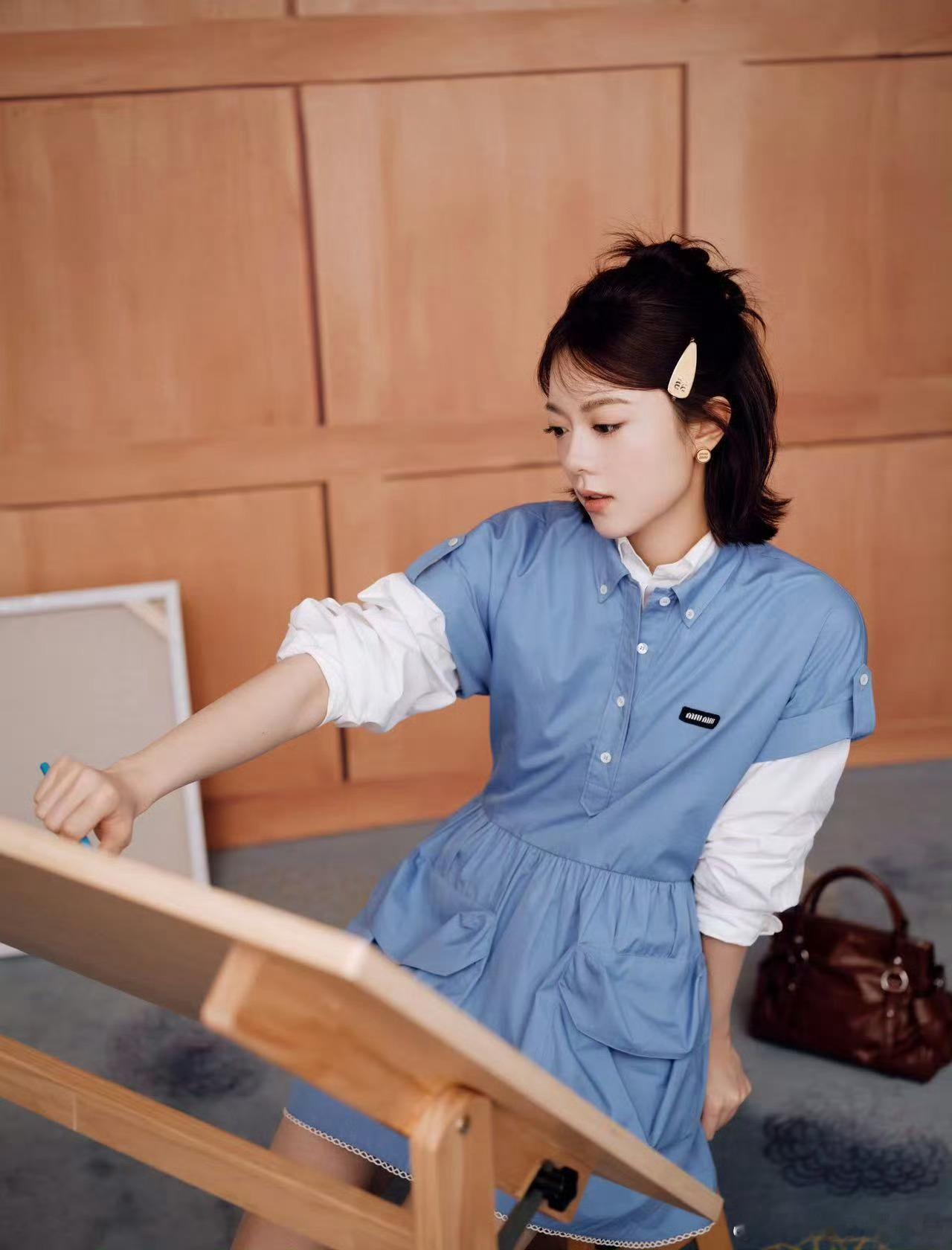 赵今麦好乖的洋娃娃赵今麦蓝色学院风连衣裙 赵今麦这身蓝色学院风连衣裙绝了!乖巧得像个洋娃娃,线下活动状态超棒,清新灵动太可了~