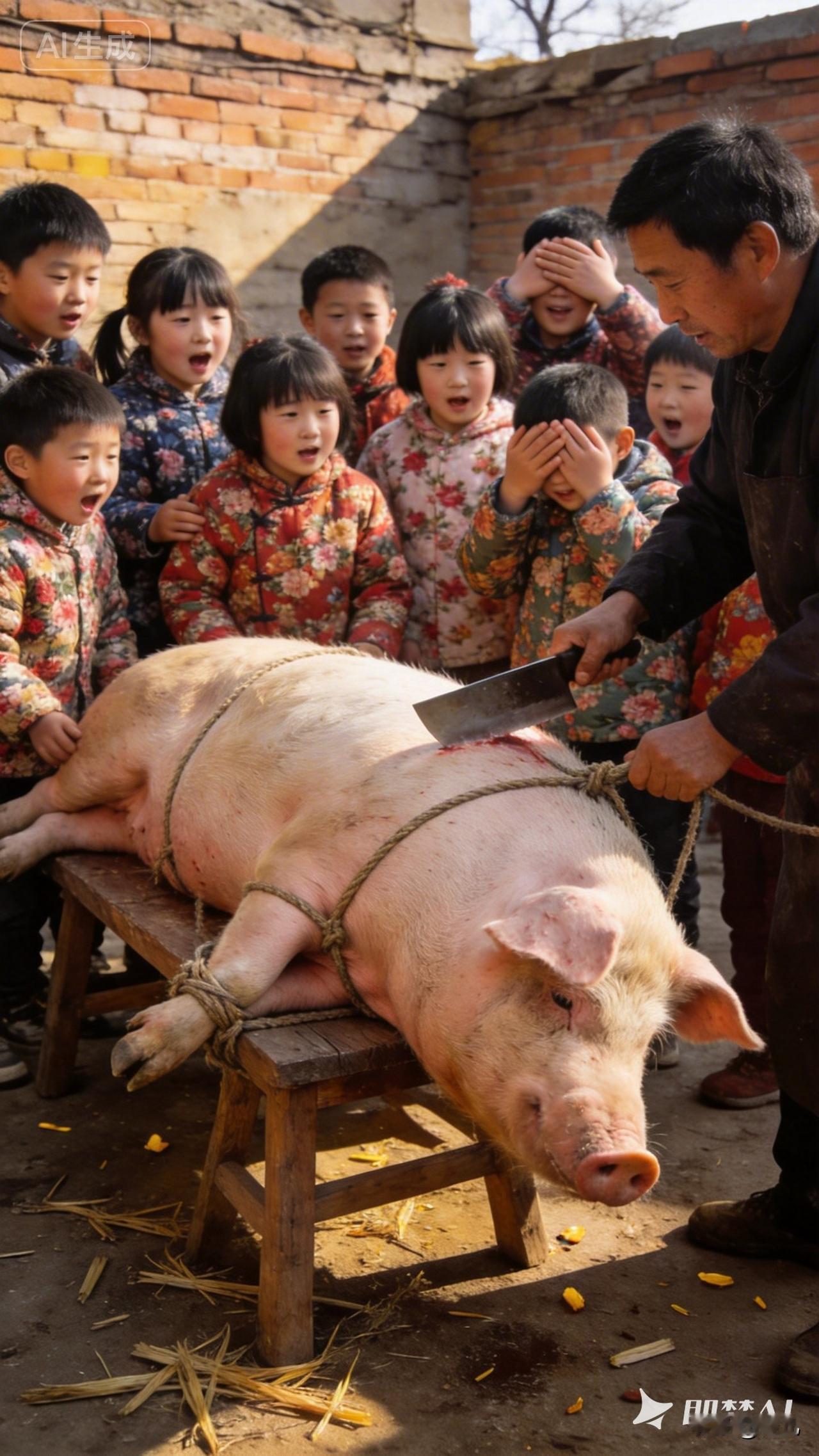 看杀猪争抢膀胱和猪蹄子如今没人要。 每年这个时候村里开始杀猪了。我小时候在家过年看杀猪的情景历历在目,小孩都等着要猪膀胱和猪蹄子,我胆小,躲的远远的,使劲捂着耳朵,宰猪时,猪声嘶力竭的嚎叫,那时在我听来如同宰我一般,但猪膀胱拿出来后,烧火的爷爷,把它吹起来似气球,用绳子扎好口后只要我在就喊我,别的小孩看我眼神似饿狼,都想得到。晚上把猪蹄里塞满猪油,用火柴棍缠上棉絮,当灯点,可好玩了。 如今孩子们再没人看杀猪宰羊了,猪膀胱和猪蹄直接扔掉,孩子们都连看一眼都嫌弃了。 我这个爱好过年后回城里,讲给小伙伴听,立刻圈粉一群,我边讲画简笔画助解,后来走上工作岗位,教师基本功大赛,我靠演讲和简笔画脱颖而出。