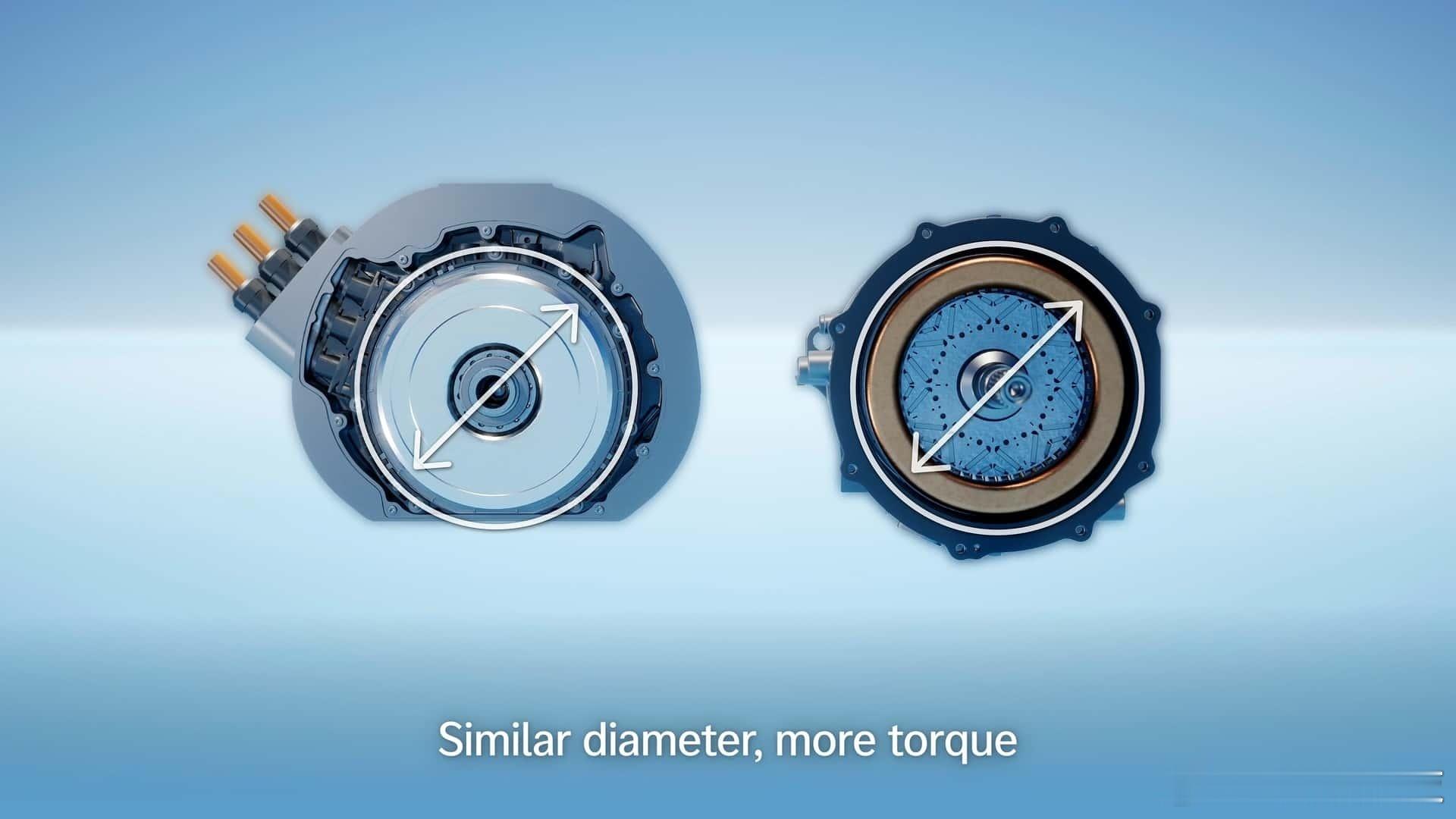 在径向磁通电机中,电磁场垂直于电机旋转轴。而在轴向磁通电机中,电磁场沿电机旋转轴平行方向展开,从而在同样体积下产生更强的磁场,带来更高效的动力表现。此外,相比径向磁通电机,轴向磁通电机拥有更充沛的动力储备,由此带来强劲、持久的动力输出,将性能提升至全新水平。