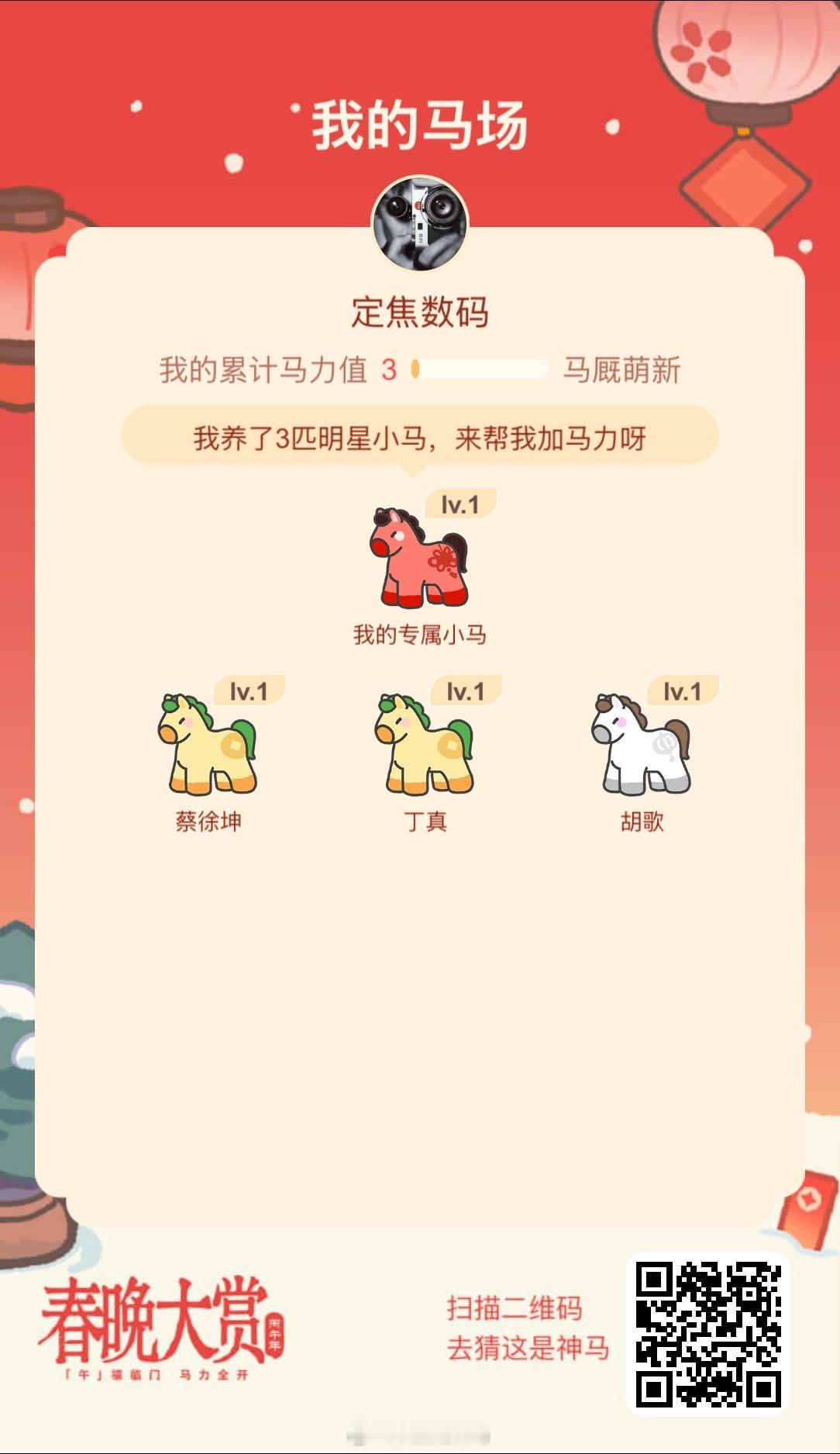 我的马场 还选了蔡徐坤、丁真、胡歌。你们会选谁,咕咕 春晚大赏马上来拜年