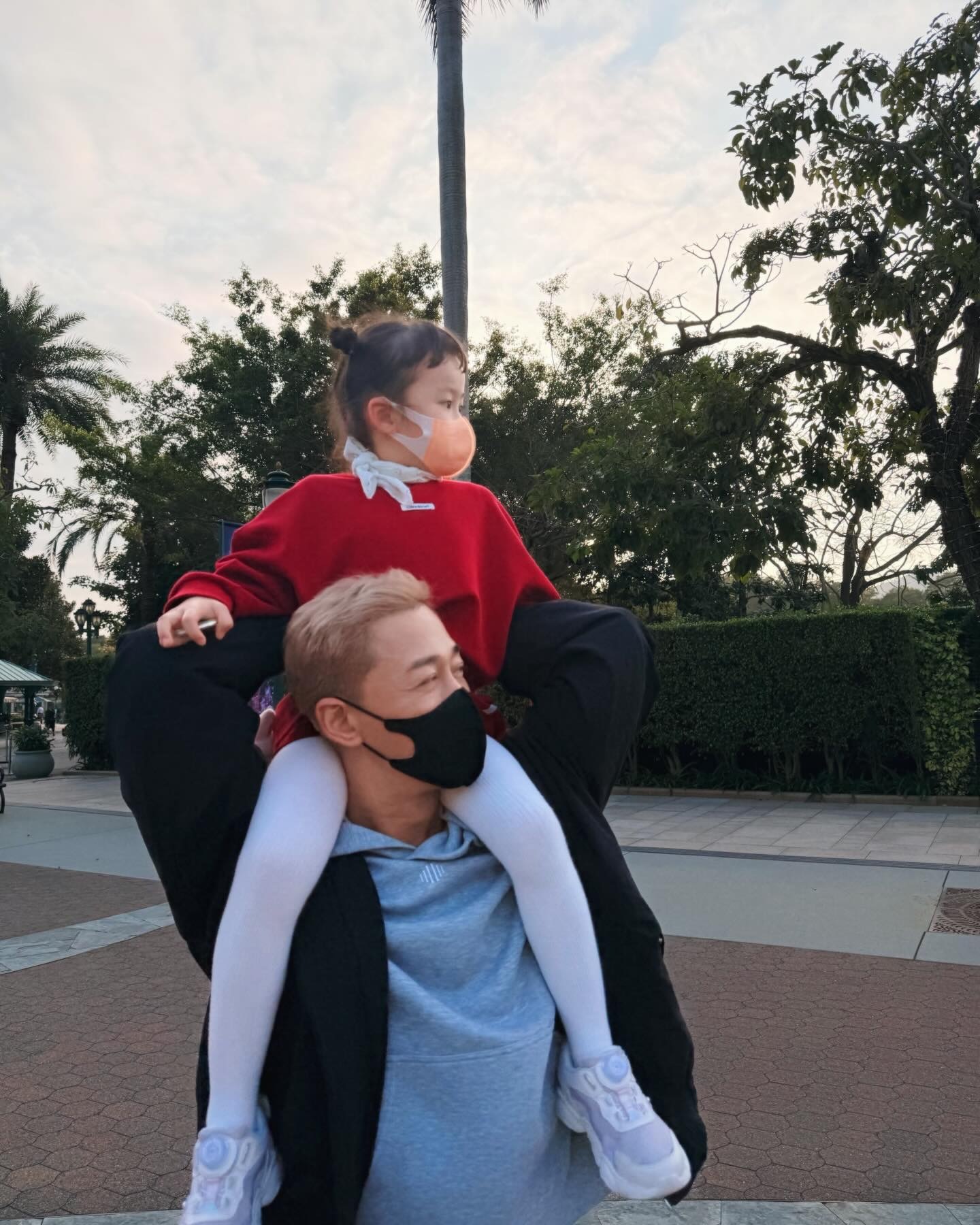林峰带张馨月现身香港迪士尼,陈浩民一家也在,两家真的是带娃好搭子!林峰的宝宝还挺