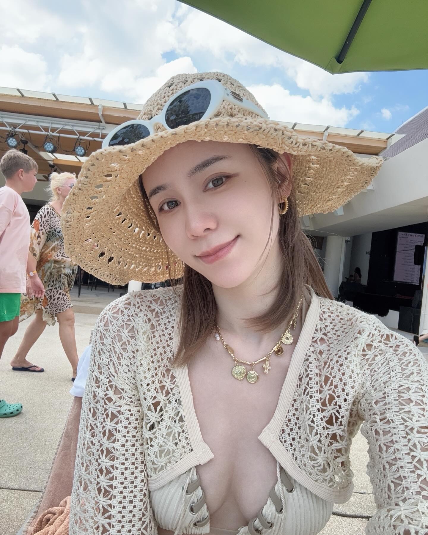 张天爱跟素人合影,胯真的好宽,大宅院似的