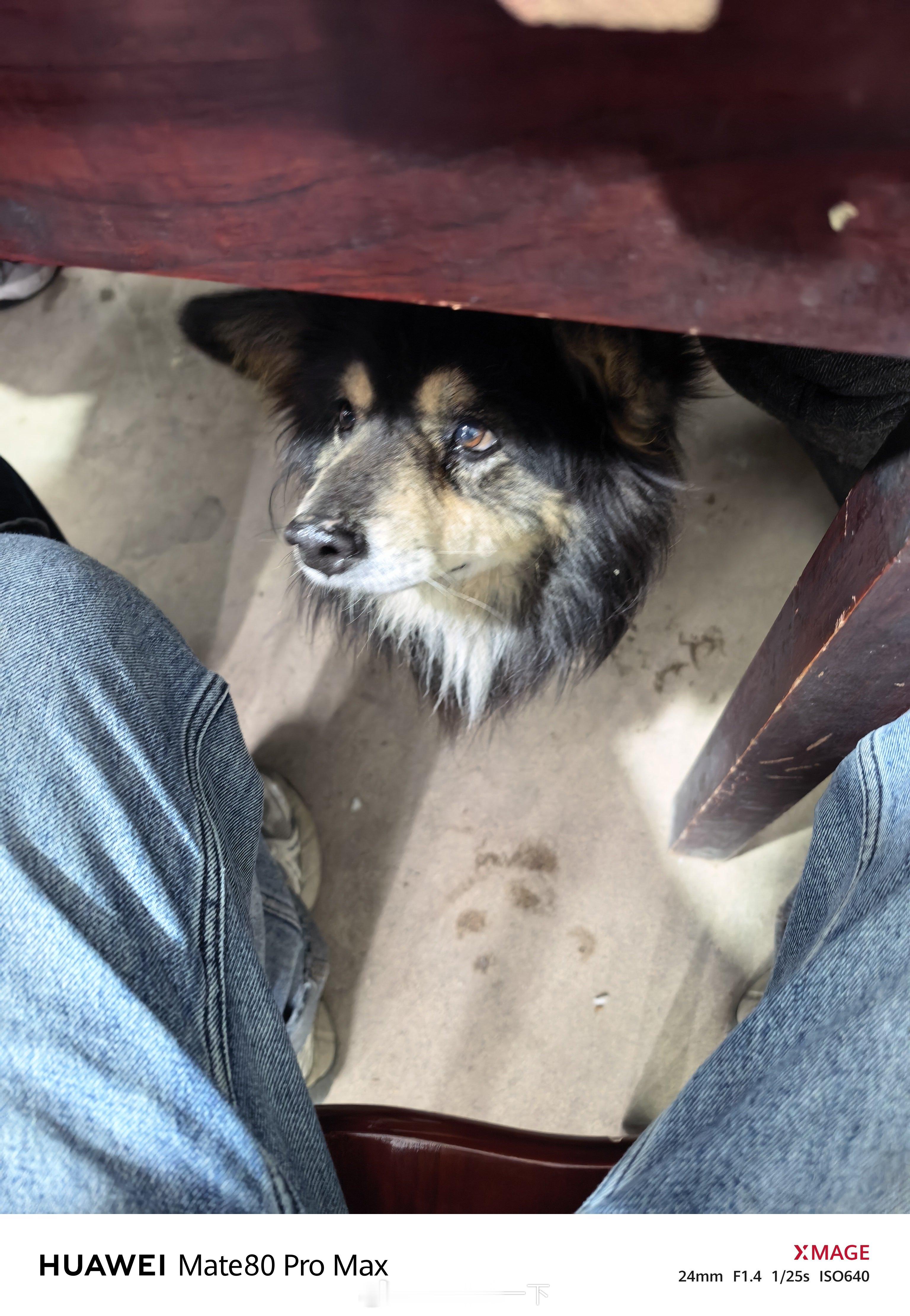在村子里吃饭,土狗最可爱的一面就是钻到桌子里等待投喂