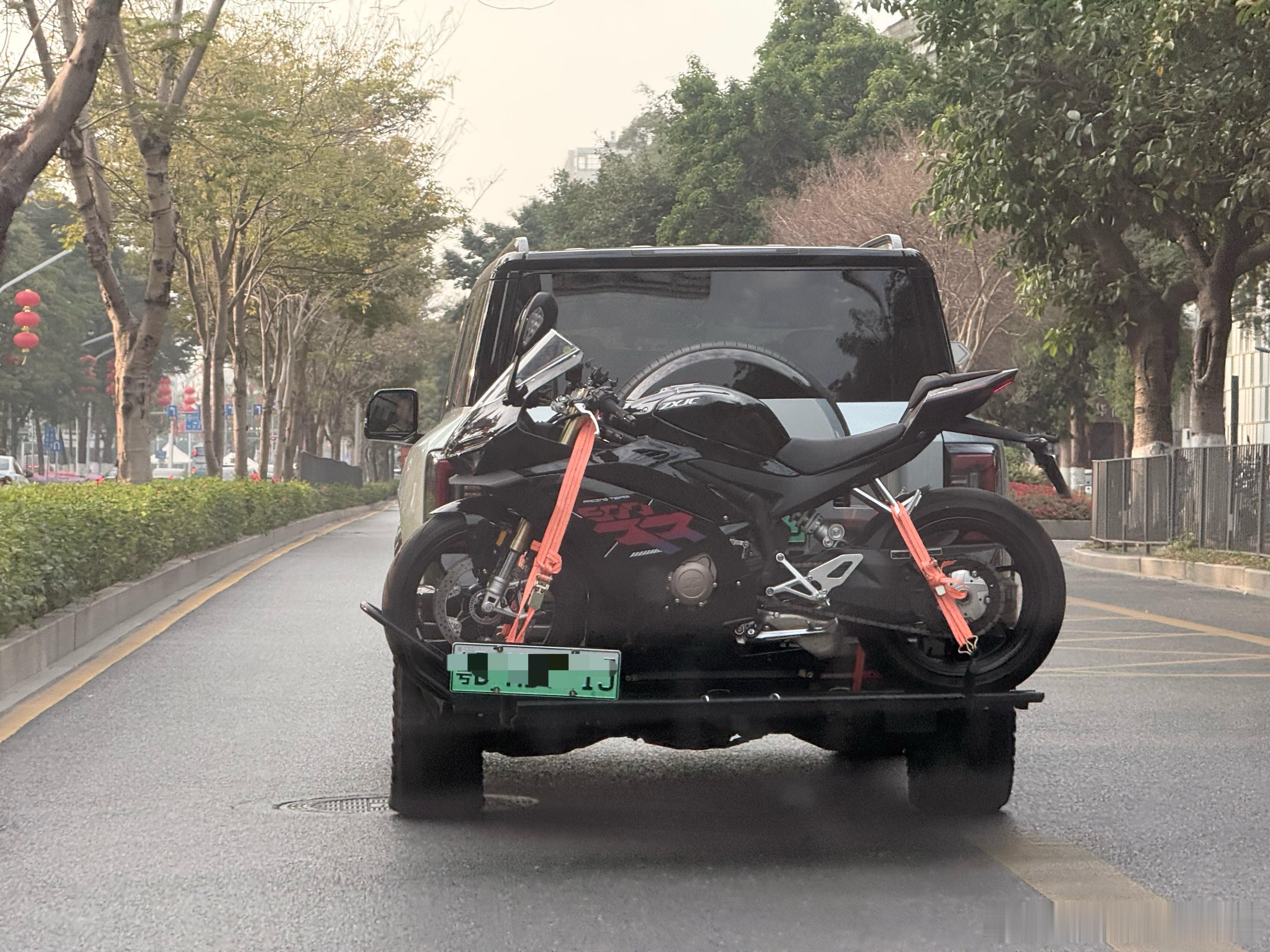 有一说一方程豹豹8车尾驮着一台摩托车后悬挂看起来依然还挺稳的大v聊车方程豹豹8