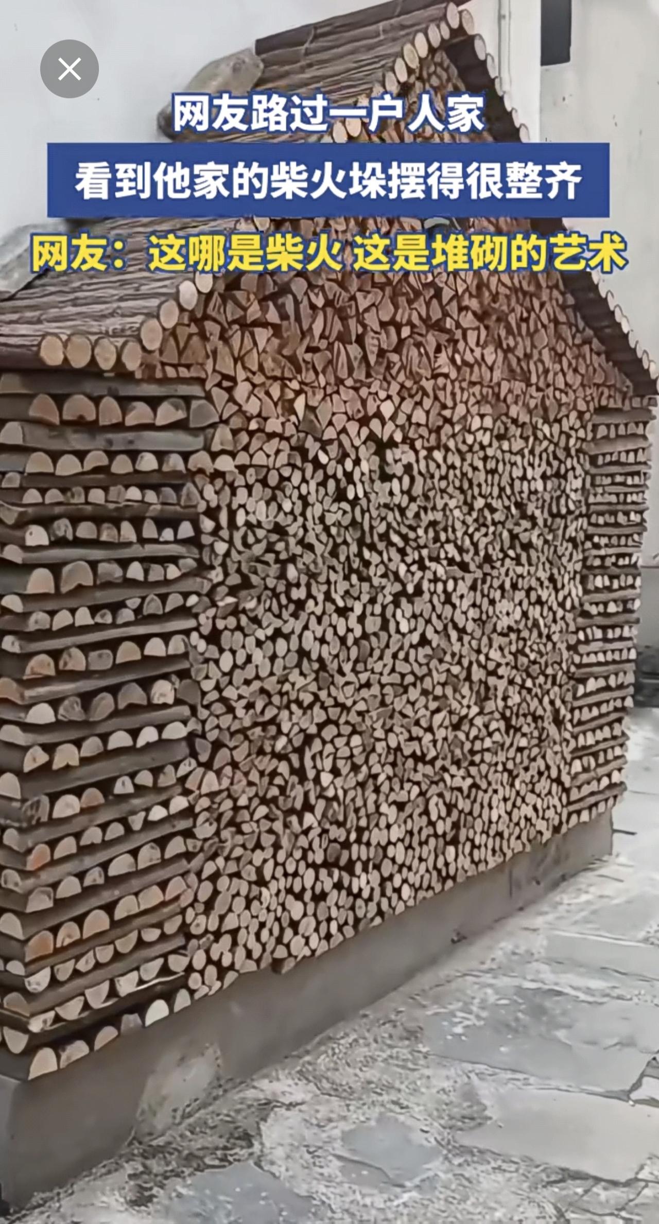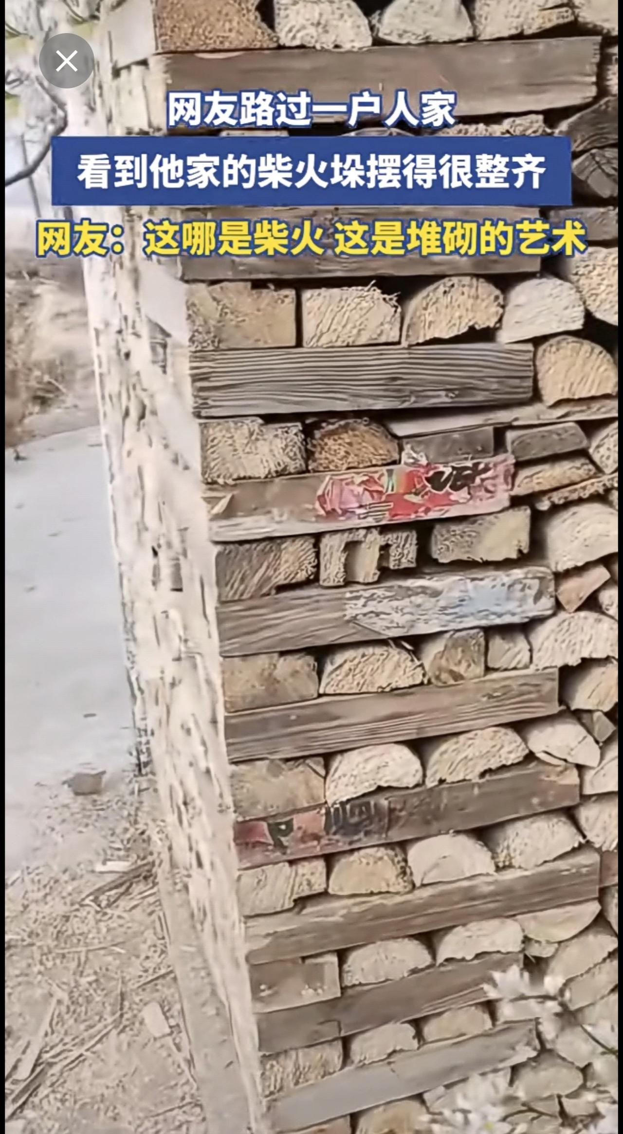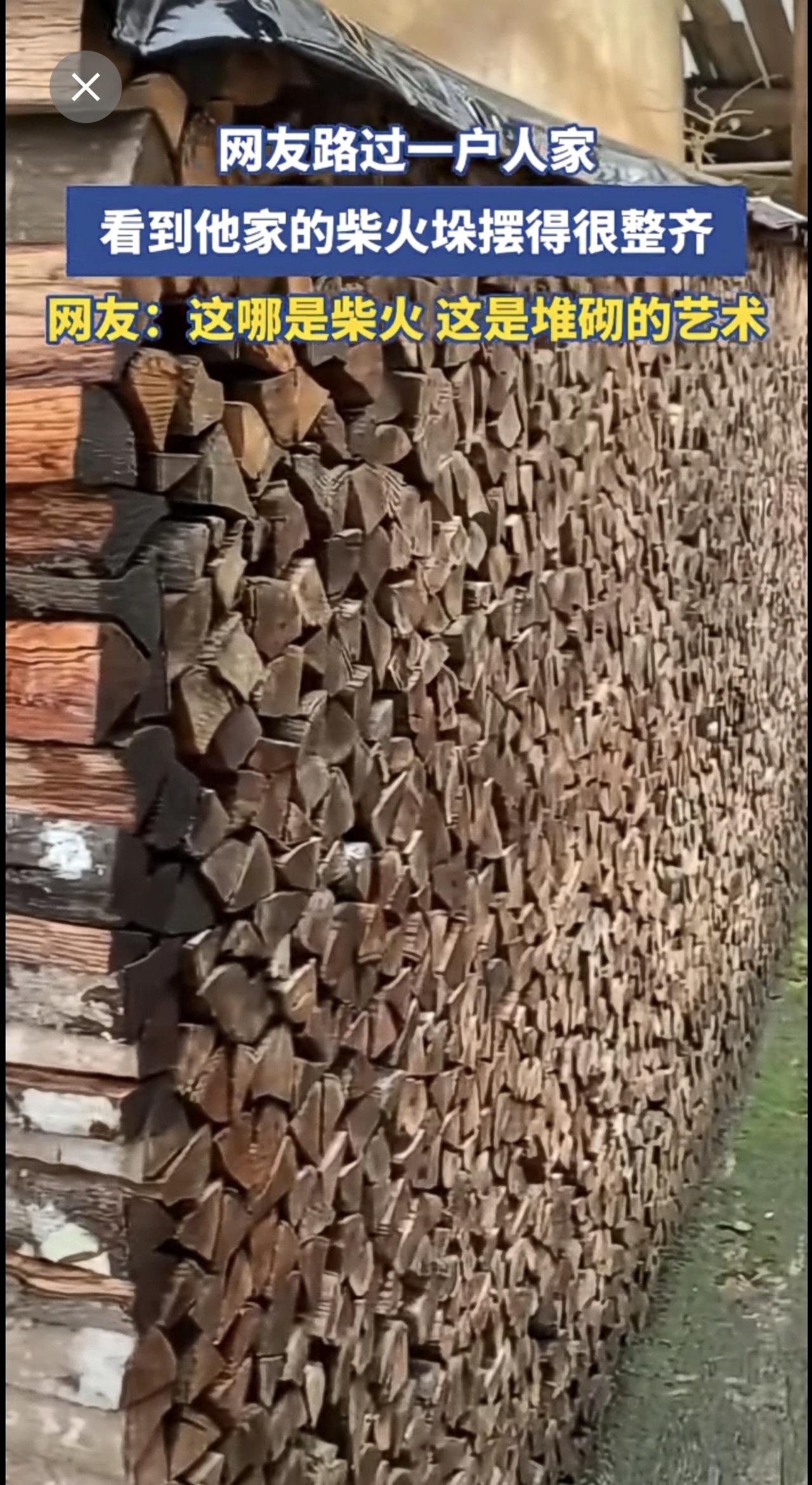 网友路过一户人家,看到他家的柴火垛摆得很整齐[赞]