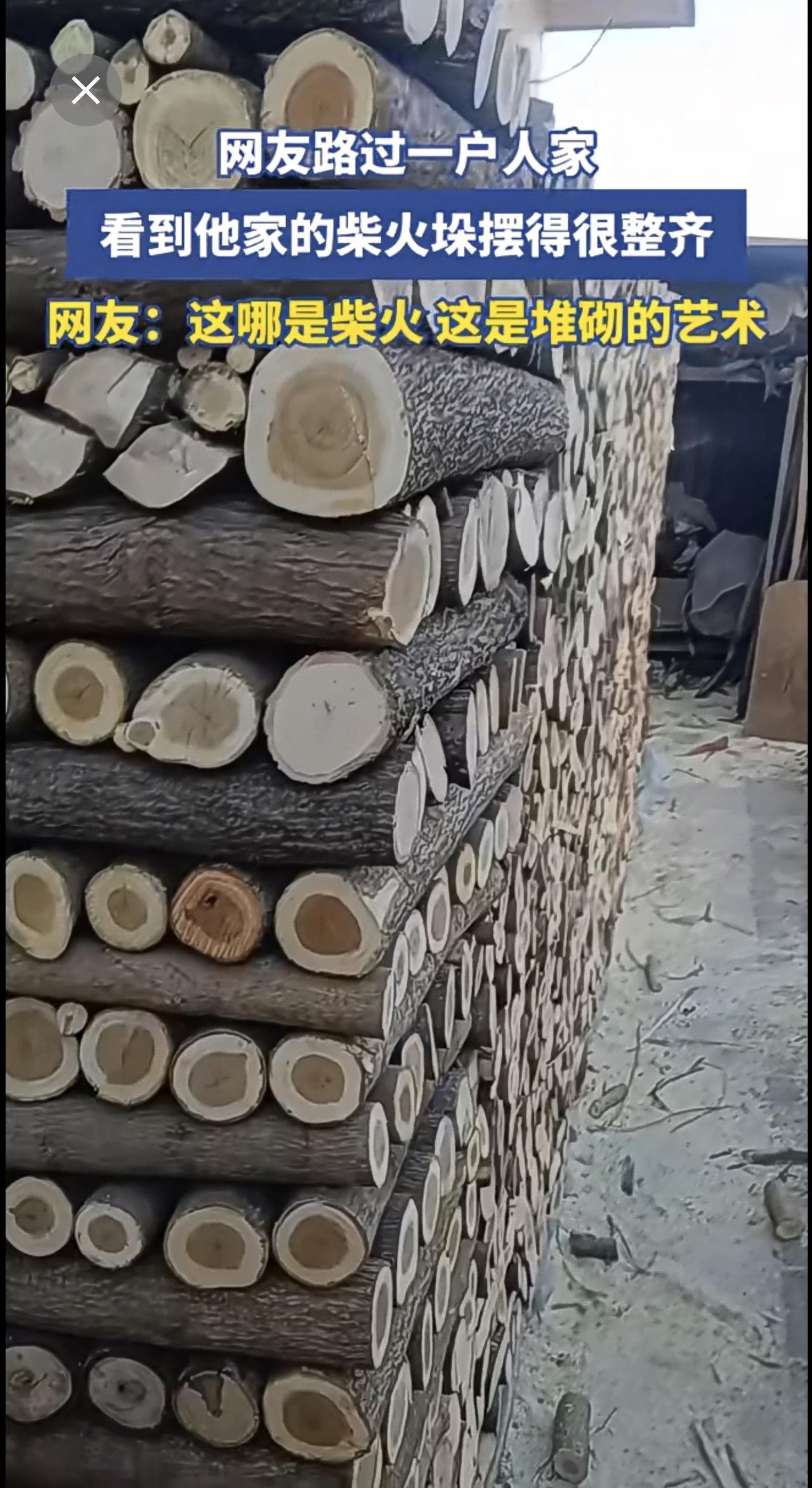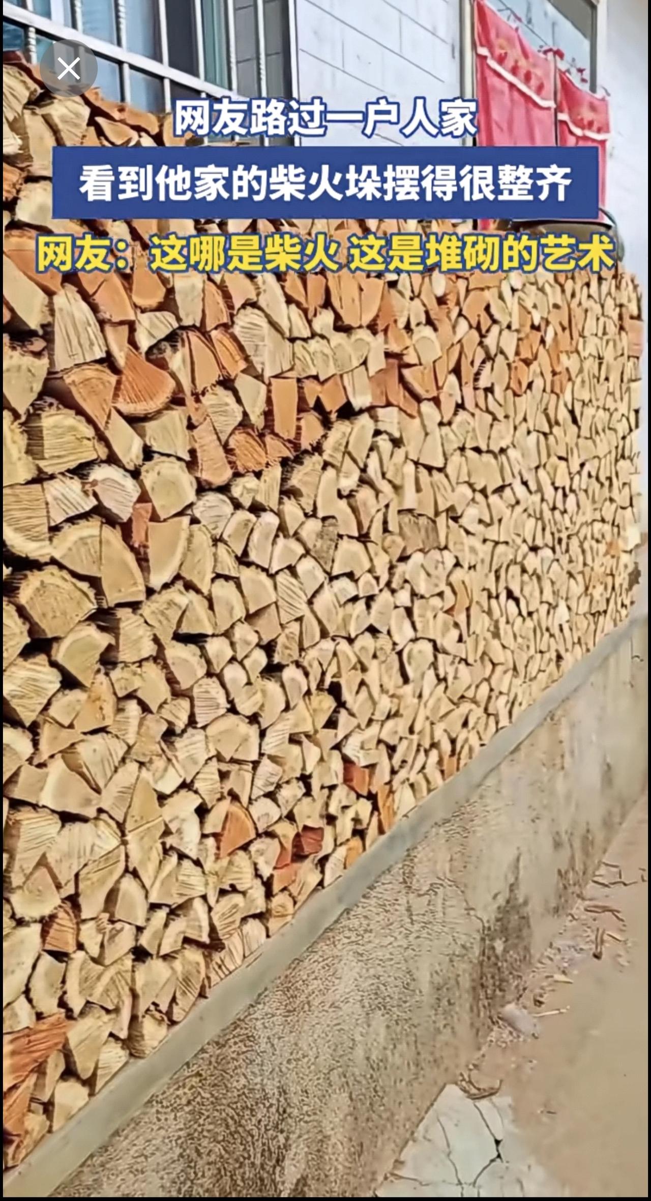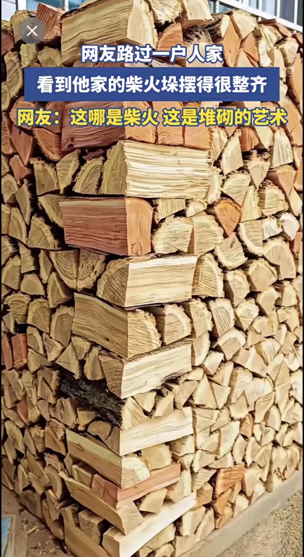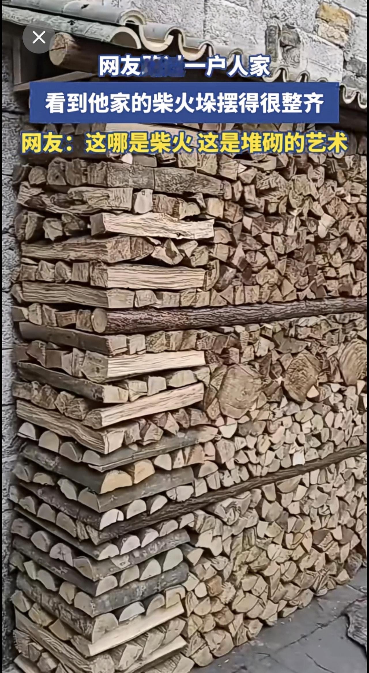 网友路过一户人家,看到他家的柴火垛摆得很整齐[赞]