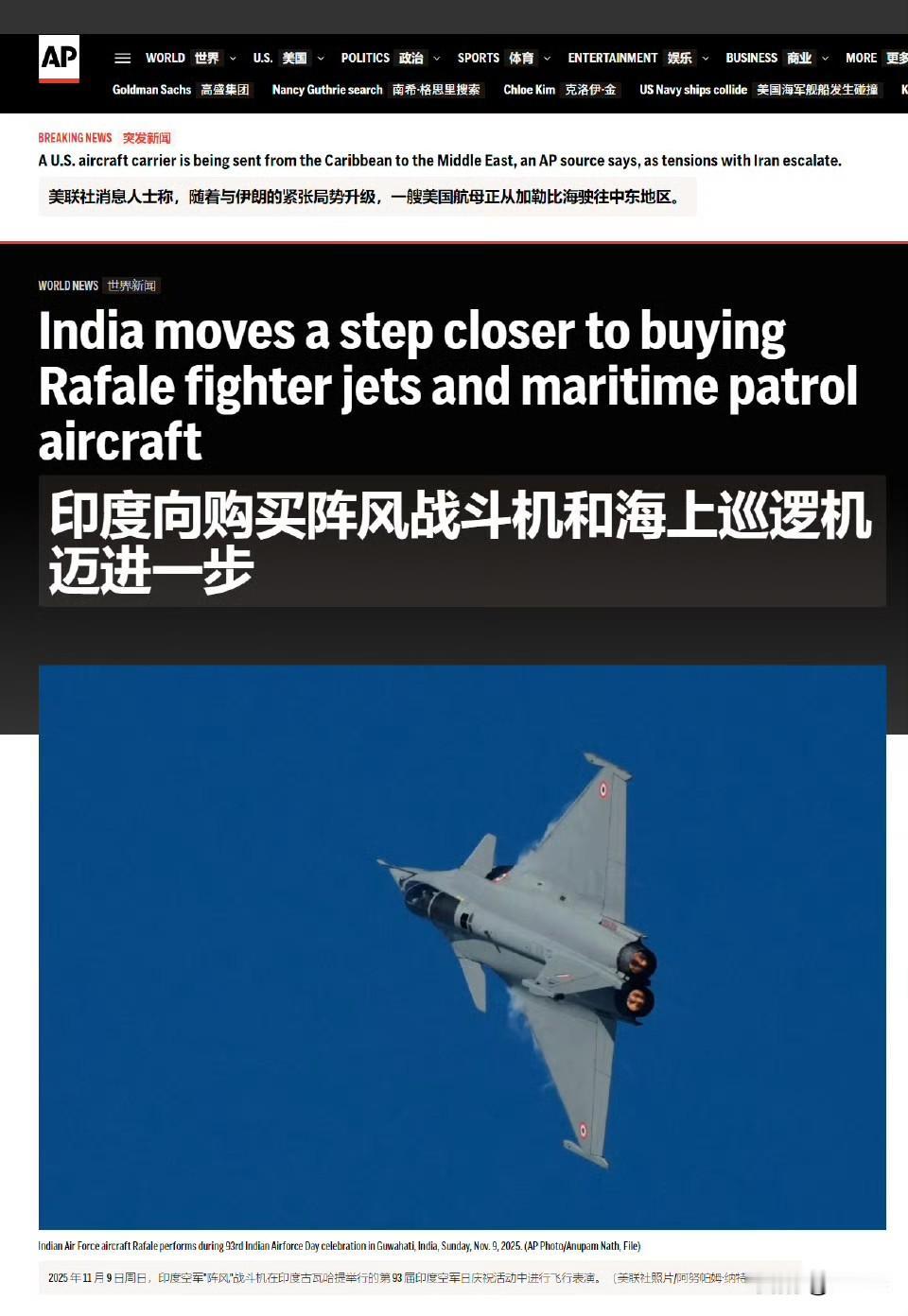 2 月 12 日,印度政府初步批准了一项总额达 3.6 万亿卢比(约合 400 亿美元)的武装部队现代化升级计划,内容包括为空军增购更多 “阵风”(Rafale)战斗机,以及为海军采购更多波音 P-8I 海上巡逻侦察机。一位了解此事的印度官员告诉美联社,由国防部长拉杰纳特·辛格领导的国防采购委员会已批准了所谓的“必要性认可”,正式启动从法国采购 114 架“阵风”战斗机、以及从美国采购 6 架 P-8I 海上巡逻侦察机的程序。印度当地媒体报道称,114 架“阵风”战斗机的采购总价为 3.25 万亿卢比,约合 358.8 亿美元。还买呢。