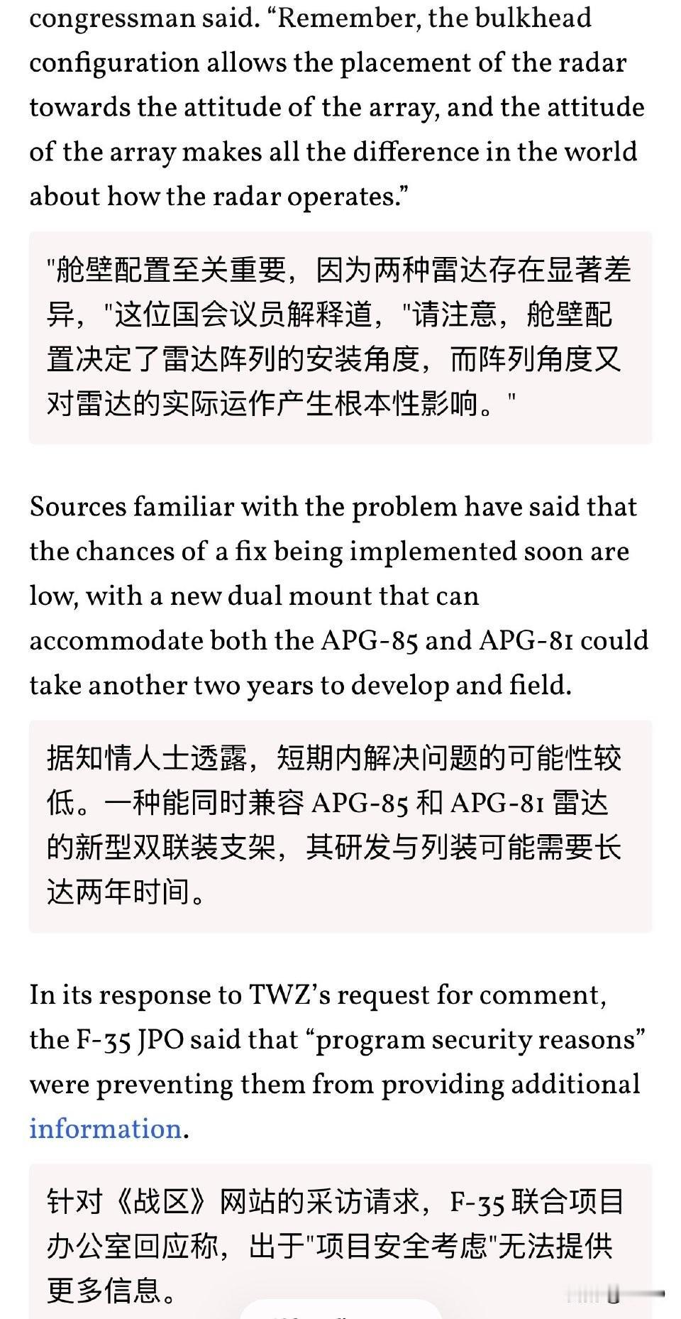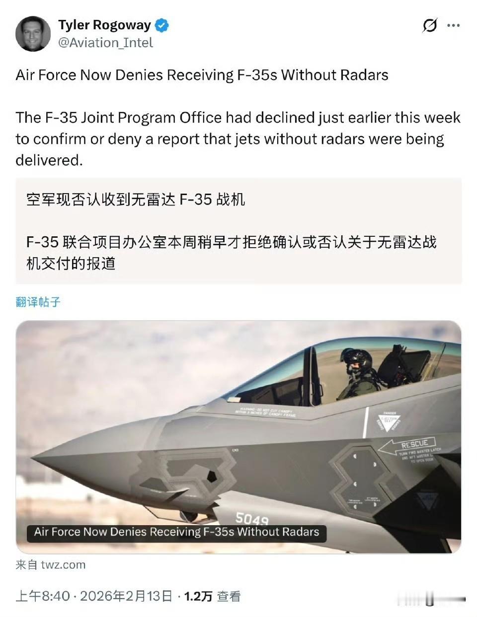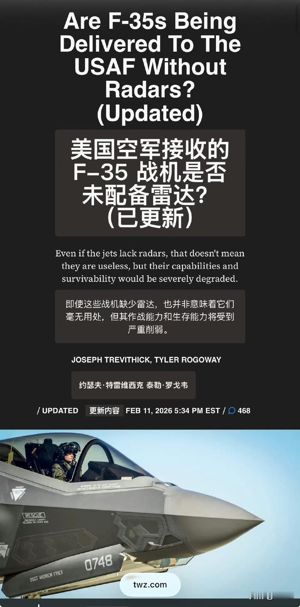 这位是TWZ的主编。现在美军不承认接收了没有雷达的F-35,辩称第17批次的F-35“安装了旧型号的APG-81雷达”。APG-85的底座怎么安装APG-81? 连美国媒体和网民自己都不信[吐舌]