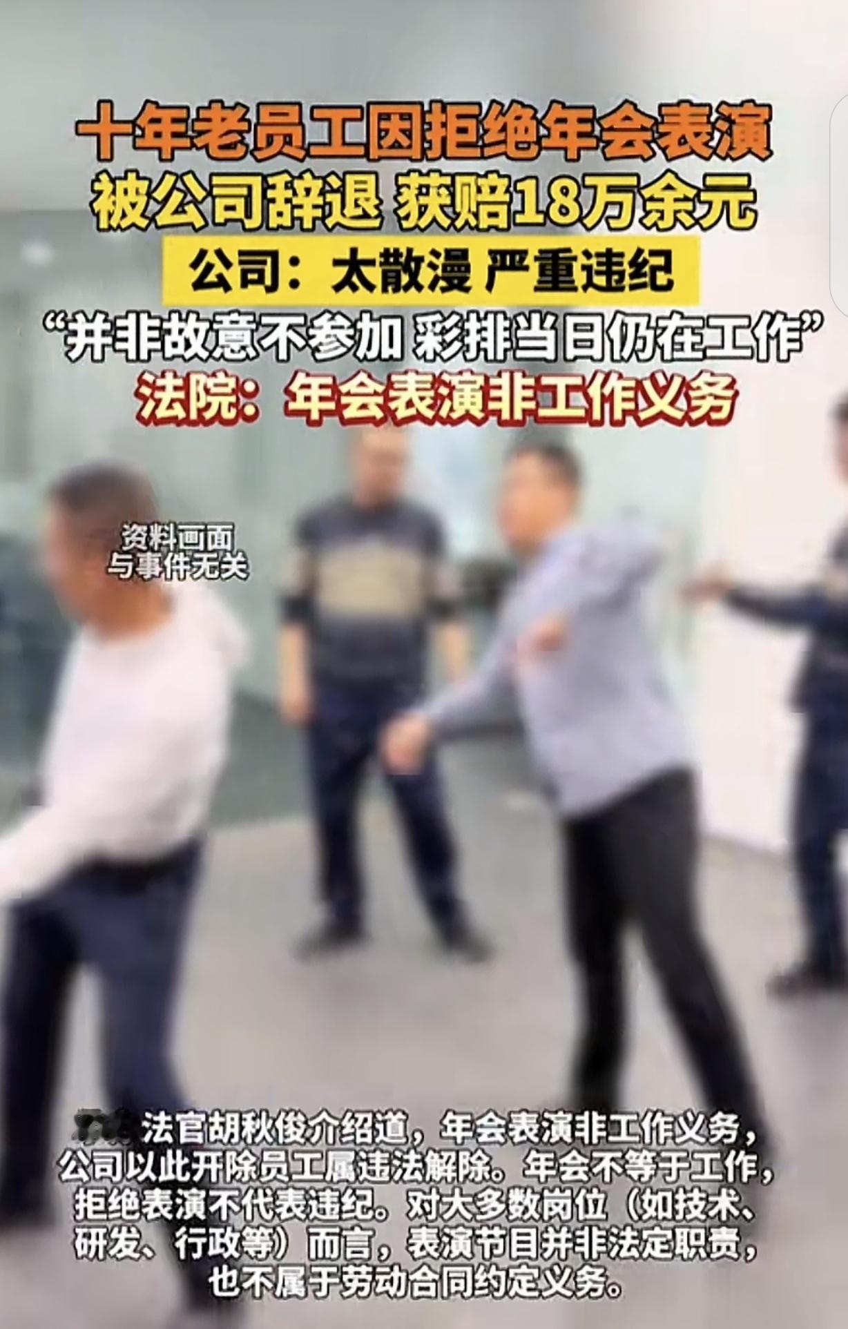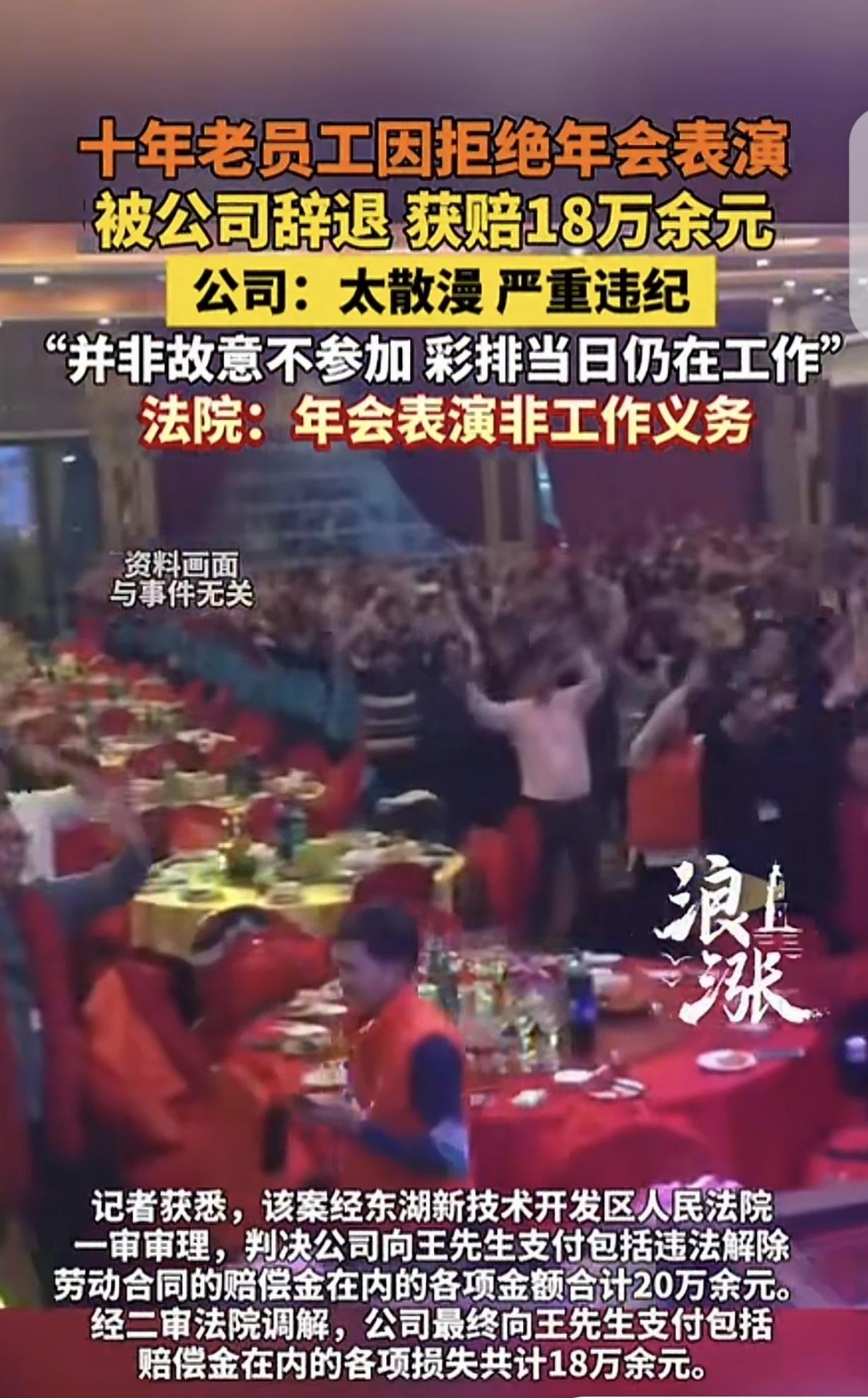 “吃相太难看了!”湖北武汉,一男子在公司工作10年,却因年会拒绝上台表演,被公司辞退,说他散漫,严重违纪,男子愤怒的把公司告上法庭:我不是不参加,彩排当日我在工作,我又不会分身,公司年会前一天就把我移出工作群了,我是被迫旷工。一审认为:年会表演非工作义务,判公司赔偿男子20万,公司不服提起上诉,二审判决出乎意料。 王先生在一家公司工作10年了,他以为自己会在这家公司干到退休,可他做梦都没想到他和公司的缘分,竟因为一场年会到了头。 公司每年都要举办年会,要求员工积极参加,并彩排节目。 可彩排时,王先生有工作在身,分身乏术,他没办法参加,可他发现正式年会开始之前,他竟被踢出工作群。 随后,公司直接把他开除,理由是他工作散漫,不顾全大体,不服从公司安排,拒绝参加集体活动。 而且年会当天是工作日,王先生拒绝参加年会也就罢了,还不请假,不到岗,无故旷工,把公司规定不当回事。 公司真是欲加之罪何患无辞呀,简直是颠倒黑白,是他不想彩排吗?一边让他彩排,一边给他安排工作,他就两只手,又没长三头六臂,这不是刁难人吗? 说他无故旷工?此言差矣,事实上,正式年会前一天,他就被踢出工作群了,就不给他安排工作了,公司就有了开除他的想法了,这不是他旷工,而是被迫旷工。 既然公司蛮不讲理,那此处不留爷,自有留爷处,公司无缘无故辞退员工,把赔偿给到位,他立马走人。 公司就想让王先生卷铺盖走人,一分都不赔,愤怒的王先生一纸诉状,把公司告上法庭,进行索赔。 有人说,自上班开始就很讨厌这年会,特别是还得表演节目,关键是整这些,自己的工作一点都不能耽误。 领导你如果愿意整这些节目,你们领导可以上台给员工表演。平时闲的没事干,年关了,还得让忙碌一年的员工给你们表演,问问员工愿不愿意?别总以自己的意愿去看问题,解决问题。 以这种荒唐理由辞退老员工,公司格局也太小了,这种公司把员工当猴耍,这公司要的不仅仅是牛马,更要的是言听计从。凭什么我工作了一年,劳累了一年,到年底了,我还得摆笑脸取悦别人? 既然给别人辞退了还不痛快的给赔偿,格局和心眼那么小,最后还是法院,玩不起就别玩,让在职的人怎么看。损失的不是赔偿,而是给在职人员心里的形象,变成垃圾公司了。 这公司干的事属实不地道,吃相太难看。年会表演本身就是个锦上添花的事,愿意上的是人情,不愿意上的是本分,凭啥绑架员工? 一边给人派工作,一边逼人家彩排,这不就是故意挖坑吗?老员工兢兢业业干了10年,没功劳也有苦劳,转头就用这种荒唐理由开除,摆明了就是不想给补偿,又想找个冠冕堂皇的借口。 更恶心的是反咬一口说员工旷工,明明是自己先把人踢出工作群,断了人干活的渠道,结果倒打一耙。 这操作跟卸磨杀驴没啥区别,寒的可不只是一个员工的心,公司里其他人看着,心里都得打鼓。 如今的打工人谁不是活多钱少压力大,年底忙得脚不沾地,还要被迫当演员取悦领导,换谁都得炸毛。 《劳动合同法》已被民法典取代,但第48条规定,用人单位违反本法规定解除或者终止劳动合同,劳动者要求继续履行劳动合同的,用人单位应当继续履行;劳动者不要求继续履行劳动合同或者劳动合同已经不能继续履行的,用人单位应当依照本法第八十七条规定支付赔偿金。 公司以拒绝参加年会为由辞退王先生属于违法解除劳动合同,应支付双倍赔偿金。二审调整金额是基于工资标准等细节核算,并没否定违法解除的核心定性。 一审认为,年会非工作义务,公司赔偿王先生20万,公司不服,提起上诉,二审判决公司赔偿王先生18万。 一审赔20万,二审降到18万,虽然钱少了点,但至少守住了理。 公司想通过耍手段欺负老实人,结果偷鸡不成蚀把米,不仅赔了钱,还把自己的名声搞臭了,以后谁还敢来这家公司干活,纯属得不偿失。 对此,你怎么看? 关注@运良说法 学法律知识不迷路