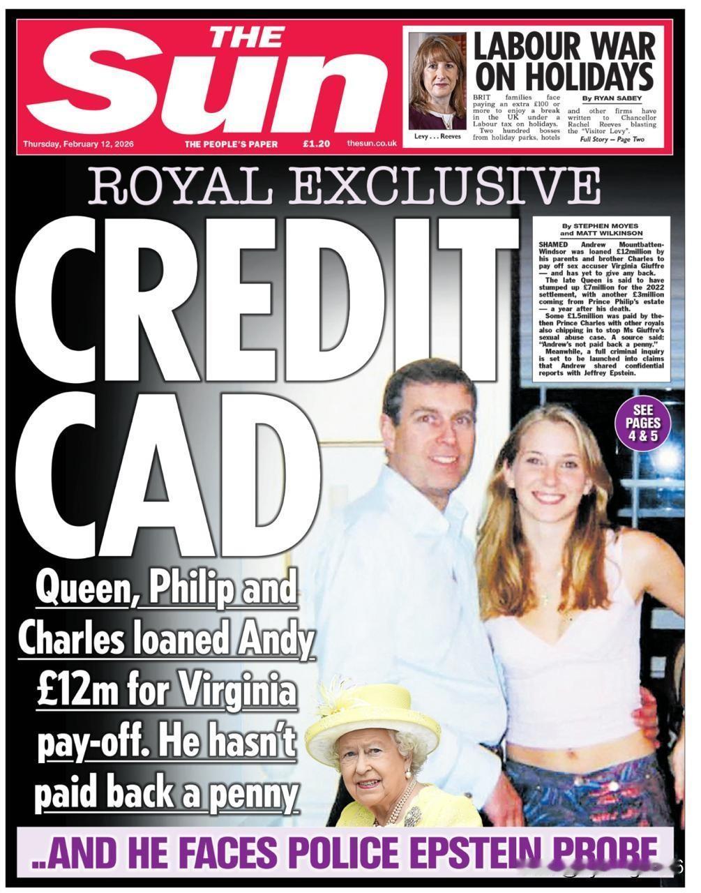 🇬🇧英国发行量最大的报纸《太阳报》爆料,变态的英国王子安德鲁在2022年向其性侵受害者弗吉尼亚·朱弗雷支付了1200万英镑,而这笔钱是他的母亲伊丽莎白女王和他的哥哥查尔斯王子(现任英国国王)“借”给他的。然而,不知何故,他们从未要求安德鲁归还这笔钱。看来,这整个王室家族都是一丘之貉! 顺便一提,弗吉尼亚本人去年在澳大利亚去世,死因被归咎于一场神秘的车祸和随后的“自杀”。这个该死的英国王室家族为了掩盖罪行,真是无所不用其极!