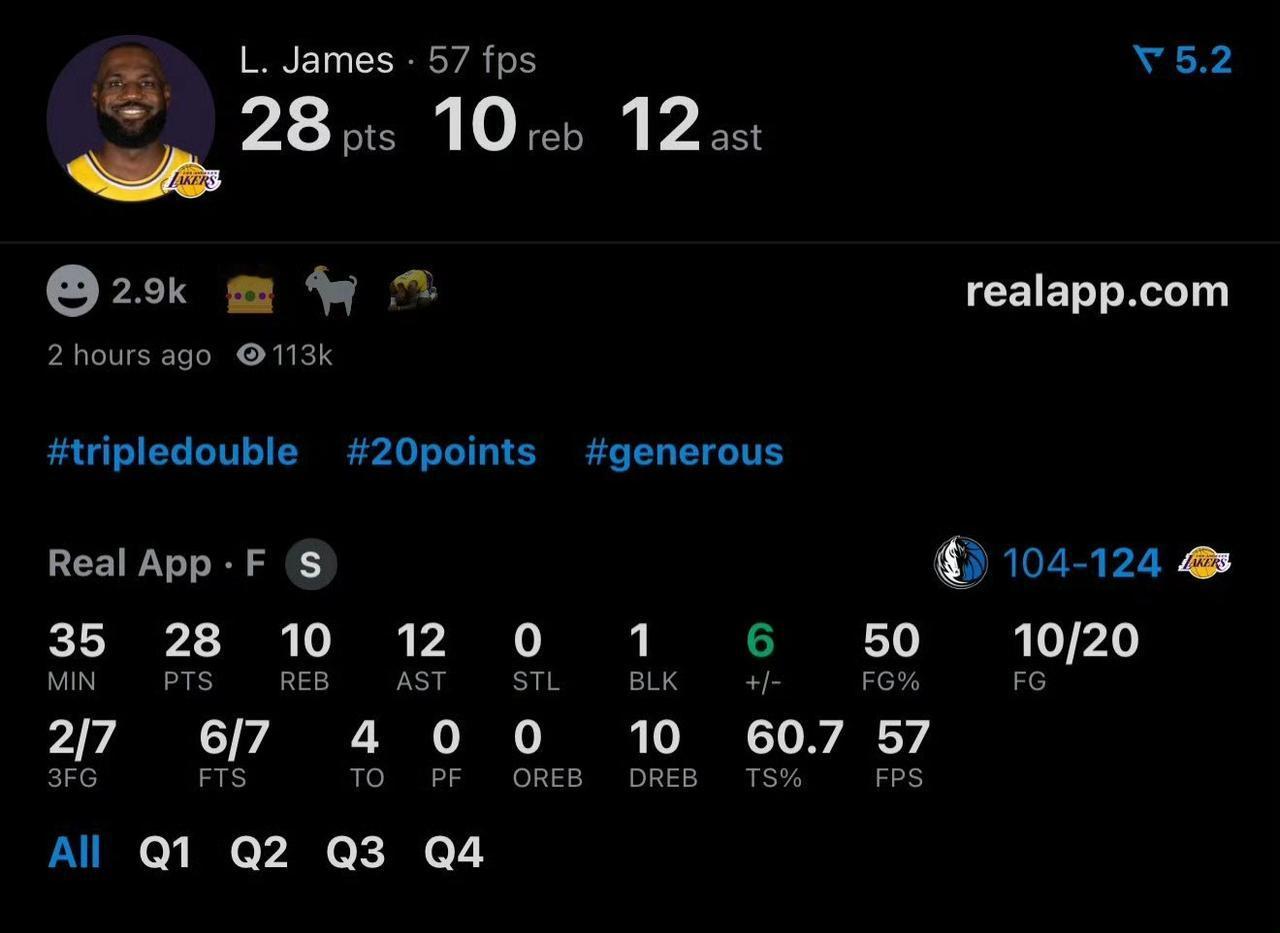 41岁的詹姆斯成为NBA历史上取得三双最年长的球员,超越卡尔-马龙。 今天湖人主场对阵独行侠,詹姆斯得到28分+10板+12助+1帽。 老詹拿到三双,剩下的垃圾时间让给布朗尼。 这是老詹本赛季第一个三双,也是他职业生涯第123个三双。