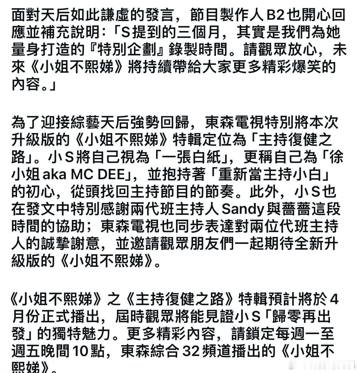 Sandy吴姗儒透过经纪人回应小s复工:早就知道卻憋著不能說,現在終於可以跟所有