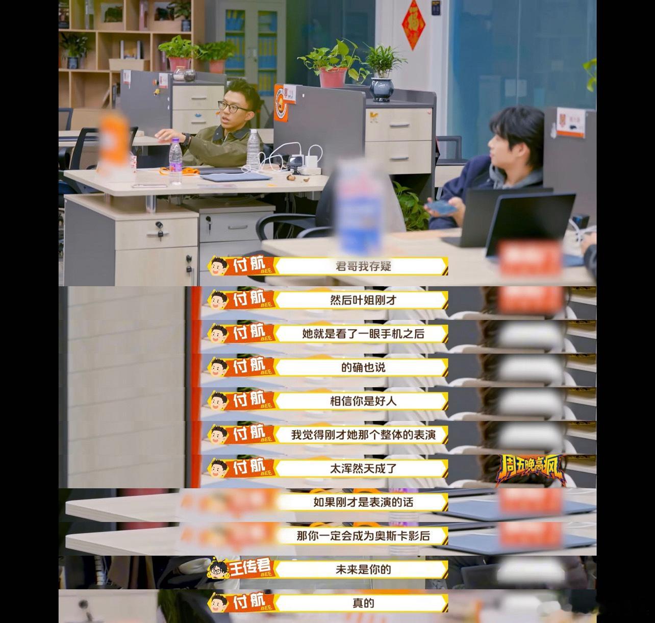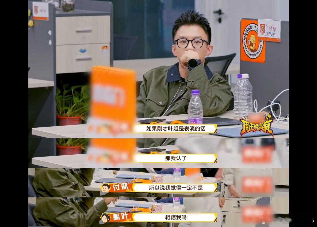高叶把付航骗傻了周五晚高疯 付航以为自己在做专业点评,其实已经被高叶带进坑里了,关键是那些夸人的话还都是真心实意的,被骗完之后估计自己也想笑,这段互动我能循环十遍。