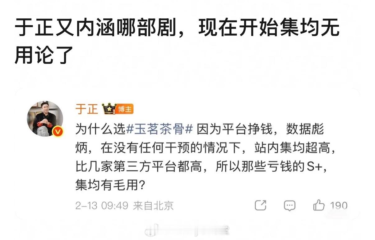 于正:那些亏钱的S+,集均有毛用?这又是在内涵哪部剧?