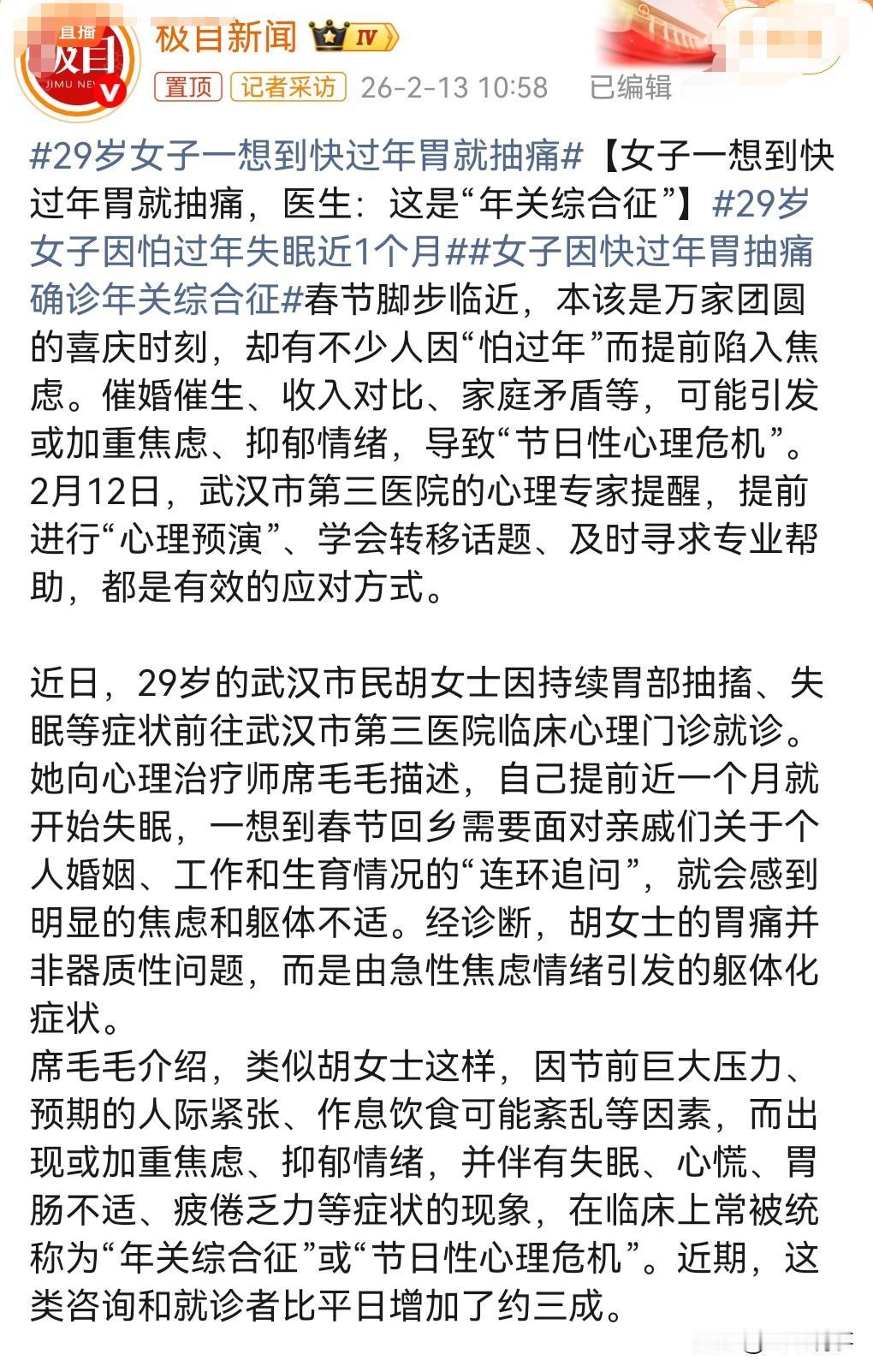 人都是要面子的,最怕亲戚朋友问一些收入方面的问题。 大龄女性就最怕别人问一些催婚生子的问题。 很多人想到这里就非常的头疼,压力山大呀。 这真是过年不得不面对的一个心理压力。 要么就不去拜年,要不就只能勇敢的面对了.最怕对方问这问那的,避无可避呀。