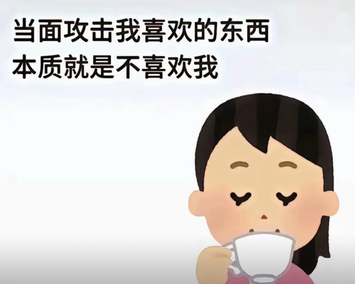 刷到一个评论“当面攻击我喜欢的东西本质就是不喜欢我”很正确