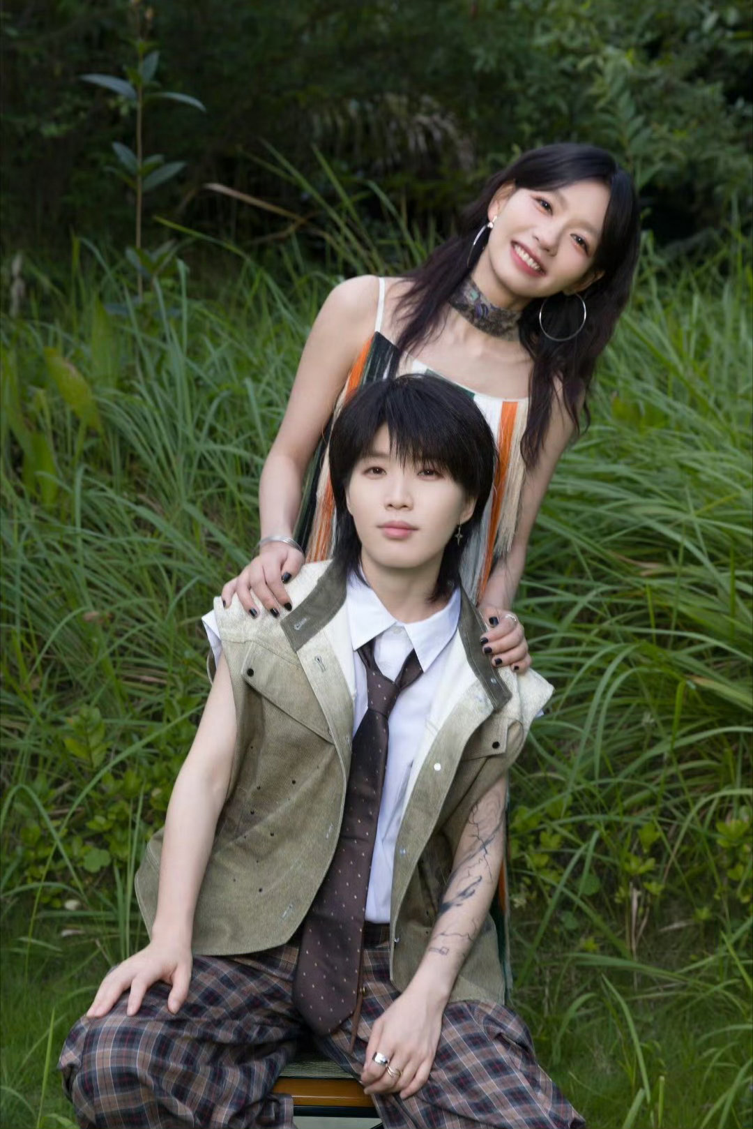 张天爱跟素人合影,胯真的好宽,大宅院似的
