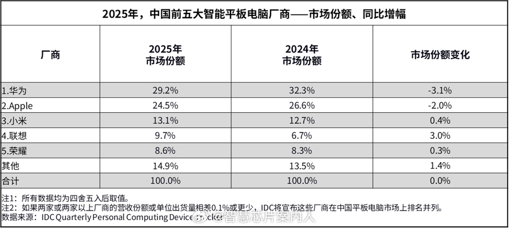 IDC数据,2025年中国平板电脑市场出货量为3376万台,同比增长13.1%。四季度增长有所降低,为7.2%。
