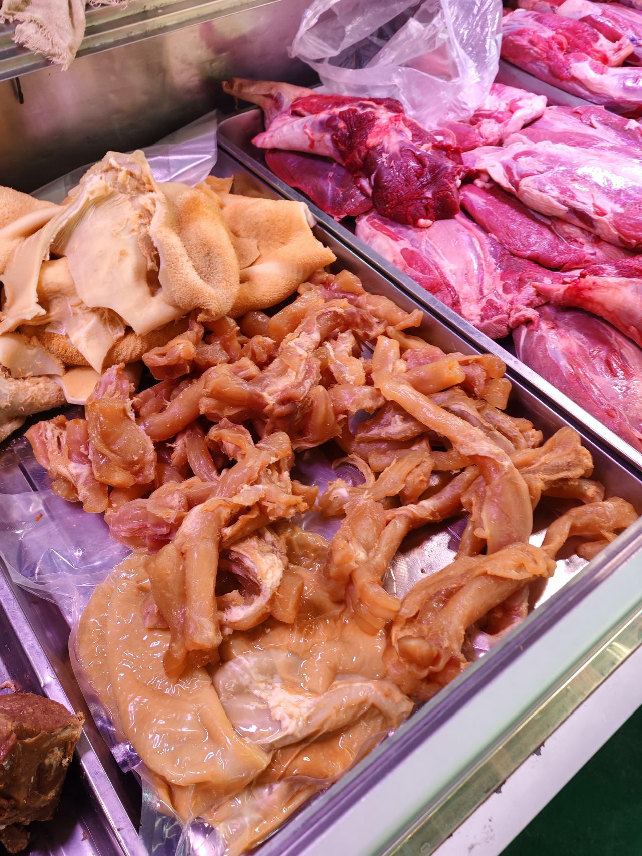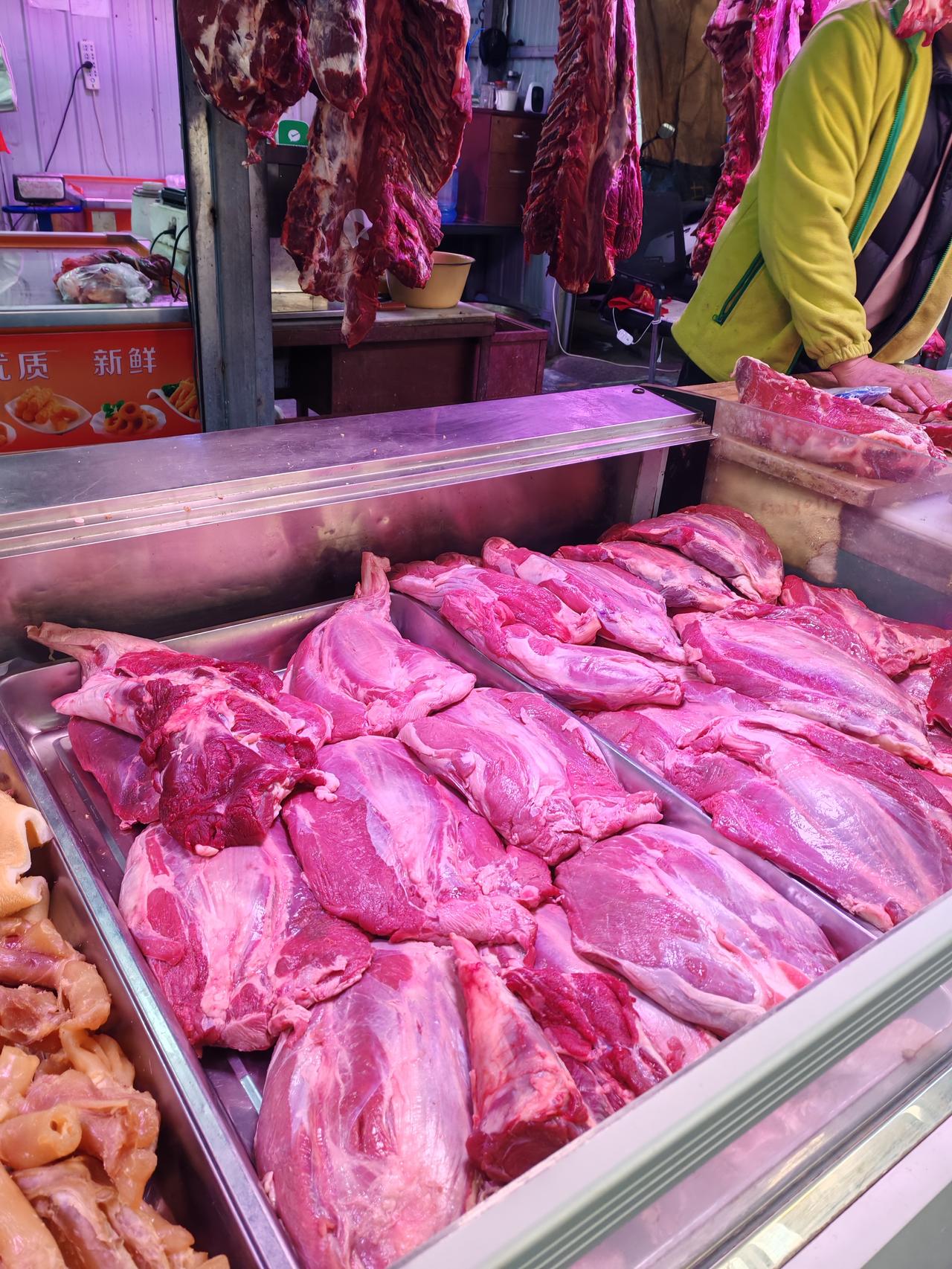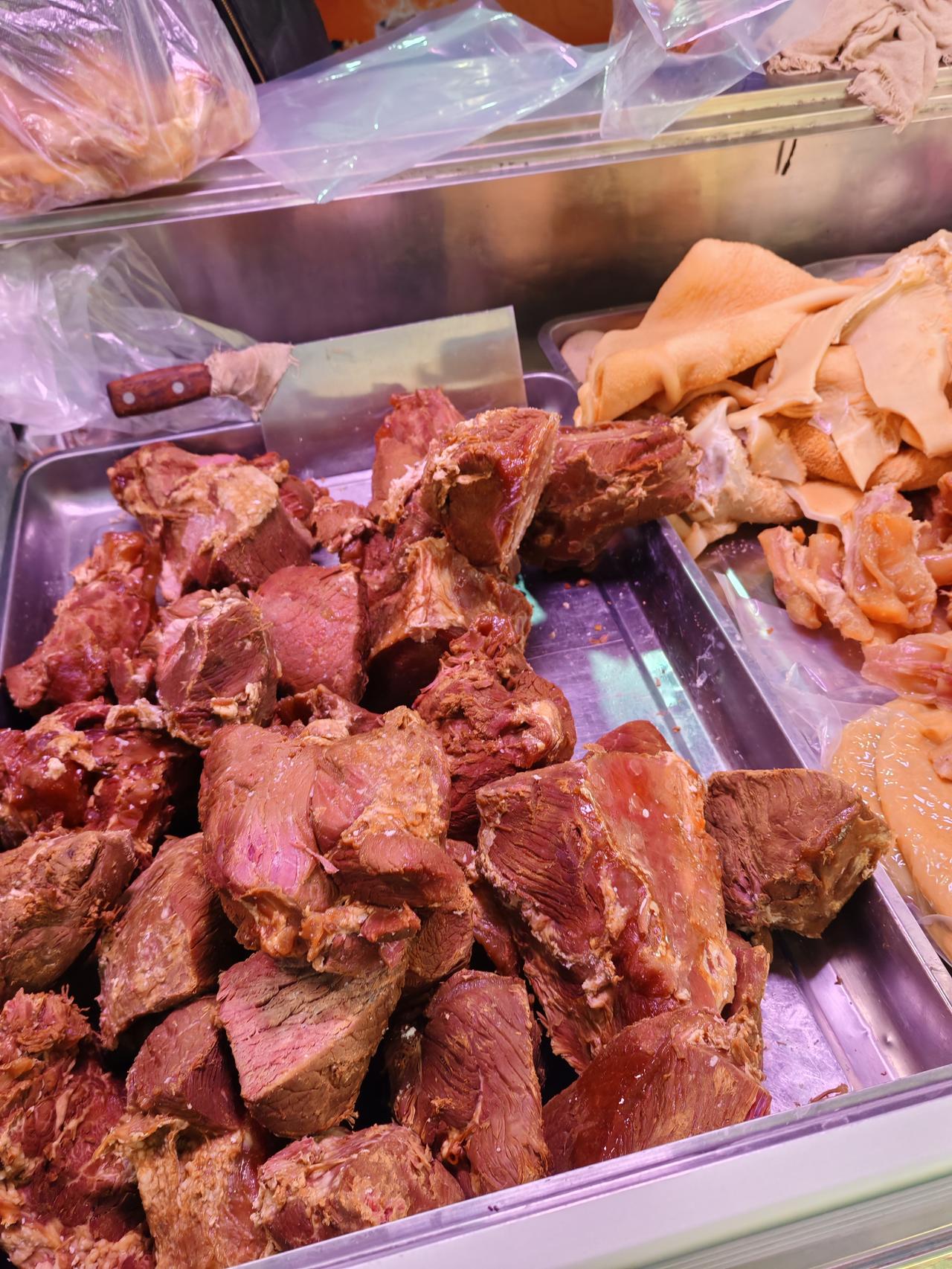 分享一下今日牛羊肉价 2月13日,坐标西安北郊。今天腊月二十六日,年更近了,上午我在市场走了一圈,发现这半年后的乡党们多了起来。 各家牛羊肉店里开始忙碌,我来到一家清真肉店,发现牛肉价有小涨,今日鲜牛肉33元1斤,牛腱子38元1斤,羊肉33元1斤,比上周价格上普遍调了两元。 而且牛羊肉店开始大量销售酱牛肉和腊牛肉,刚才路过老马家,看了他家的酱牛肉72元1斤,腊牛肉72元1斤,牛腱子78元1斤,蹄筋55元1斤,我拍摄的是老杨家牛羊肉店,他家酱牛肉68元1斤,蹄筋55元1斤,羊头肉38元1斤。 清真肉店牛羊肉品质靠谱,基本不会掺假,因此购买的市民相对更多。这几天没去洒金桥,不知道今年回坊酱牛肉和腊牛肉是什么价?牛肉价格