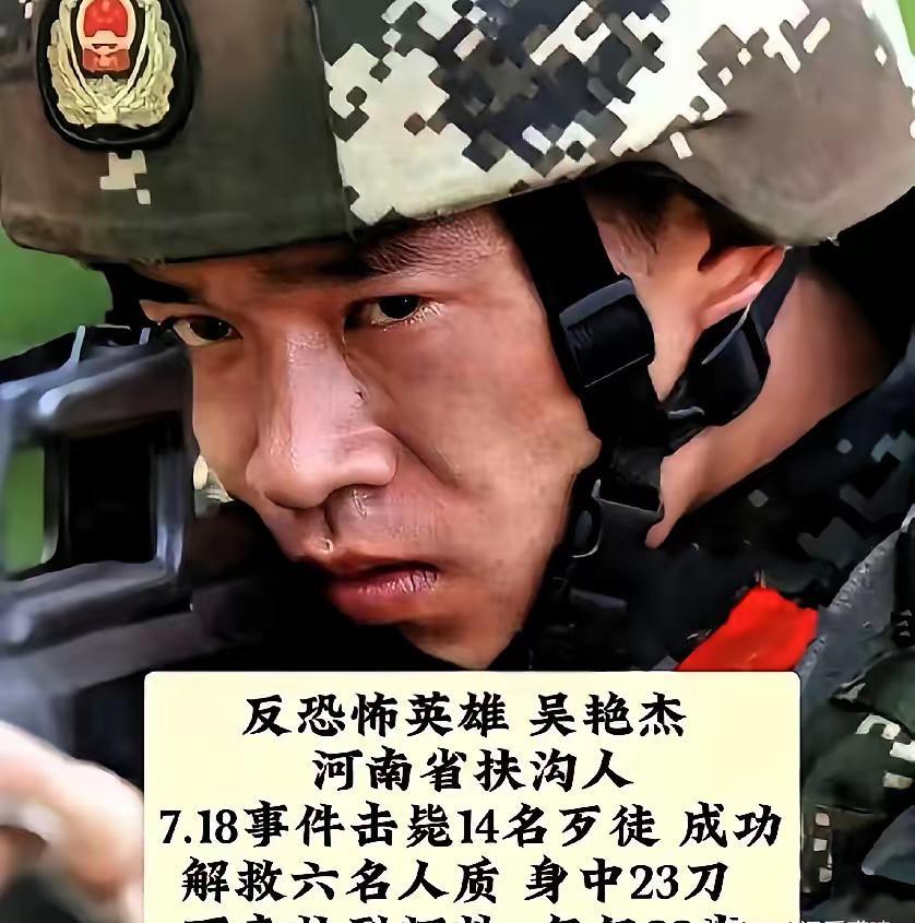 太扎心了!22岁武警战士吴艳杰,用生命救下6条人命,全网转发却寥寥无几,而同一天明星一条自拍,点赞轻松破千万。 我们总在喊着致敬英雄,可真正的英雄站在面前,却被流量的潮水淹没。 吴艳杰是河南扶沟普通农家孩子,1989年出生,2009年入伍,个子不高、体能不算突出,却凭着一股不服输的劲,把自己练到拔尖。 入伍第一年拿优秀士兵,第二年两次嘉奖,他总说要活出个样子,要接妈妈去新疆看胡杨林。 2011年7月18日,新疆和田突发暴恐袭击,派出所被冲闯、人质被劫持、大楼被纵火,生死就在一瞬间。 他只说了三个字:我上。 没穿防弹衣,顾不上害怕,冲进浓烟滚滚的楼道,和战友一起救下6名人质,参与击毙14名暴徒。 近身搏斗中,他被暴徒持刀袭击,重伤倒地,年轻的生命永远停在22岁。 部队追授他革命烈士、一等功,追认中共党员,这份荣光,是用命换的。 可这样的英雄事迹,在流量面前显得格外冷清。 转发不过千,点赞不过万,远不如一条娱乐动态的零头。 我们忙着追爱豆、刷八卦、抢热评,却很少为用命护我们平安的人,停下一秒、点个赞、留句感谢。 不是英雄不够伟大,是我们的注意力,太容易被无关紧要的东西带走。 明星的光环靠流量堆出来,英雄的荣光,是用鲜血与生命铸出来的。 流量会过期,八卦会凉透,可替我们挡在黑暗前的人,不该被忘记。 吴艳杰没来得及带妈妈看胡杨林,战友替他去了。 那片胡杨千年不倒、千年不朽,像极了他留在世间的模样。 我们总说时代需要榜样,可真正的榜样,从不在聚光灯下,而在我们看不见的地方,默默扛下所有危险。 别让英雄流血又流泪,别让真正的守护者,被时代遗忘。 记住他的名字:吴艳杰,22岁,用生命守护万家灯火。 你愿意为这位年轻烈士留一句致敬吗?你觉得,我们该怎么让英雄不被流量淹没?