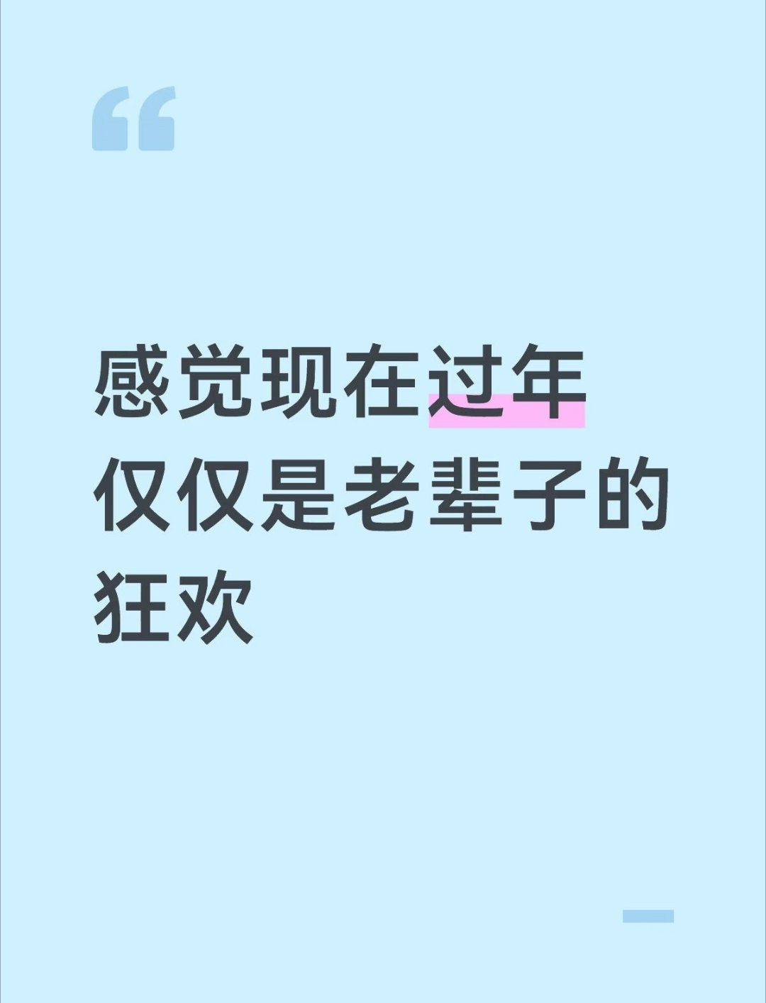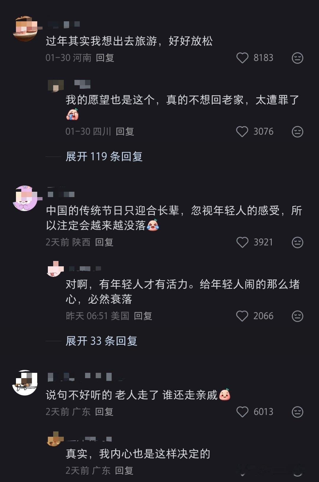 其它节日,怎么开心怎么来。而过年这个节日,重点并不是你,而是亲戚、长辈。别的节日是放假哄自己开心,过年是放假哄父母和长辈开心,自然比较累。