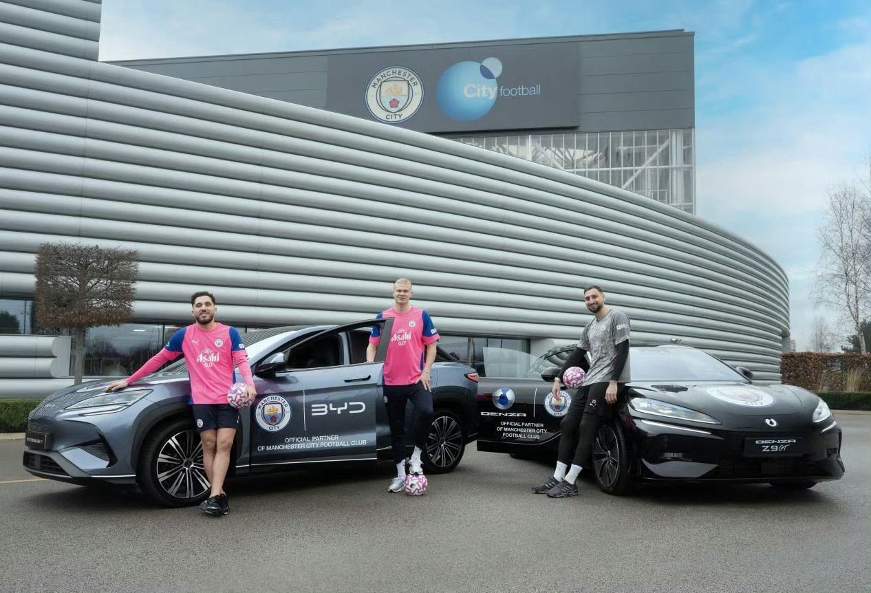 全球销量第一的新能源汽车品牌比亚迪和全球战力最强(之一)的足球俱乐部曼城来了一场强强联合——比亚迪正式与曼城足球俱乐部达成深度战略合作,以科技创新与绿色理念为体育事业注入新动能。根据合作协议,比亚迪将为曼城俱乐部及足球学院提供全系车型与新能源配套解决方案,助力俱乐部构建绿色低碳运营体系。同时,比亚迪品牌元素将亮相球队训练服,旗下车型将作为官方先导车参与赛事相关活动,实现品牌与绿茵赛场的深度融合。双方秉持创新、卓越与可持续发展的共同理念,此次合作不仅是体育与科技的跨界携手,更是绿色发展理念的生动实践。比亚迪以领先的新能源技术,为全球体育产业的低碳转型提供中国方案,让绿色出行赋能绿茵赛场,传递可持续发展的核心价值。作为全球新能源行业标杆,比亚迪此次全球化体育营销布局,进一步拓宽品牌国际影响力,以体育为桥梁,向世界传递绿色出行理念,推动中国智造与全球体育事业共融共生、协同发展。