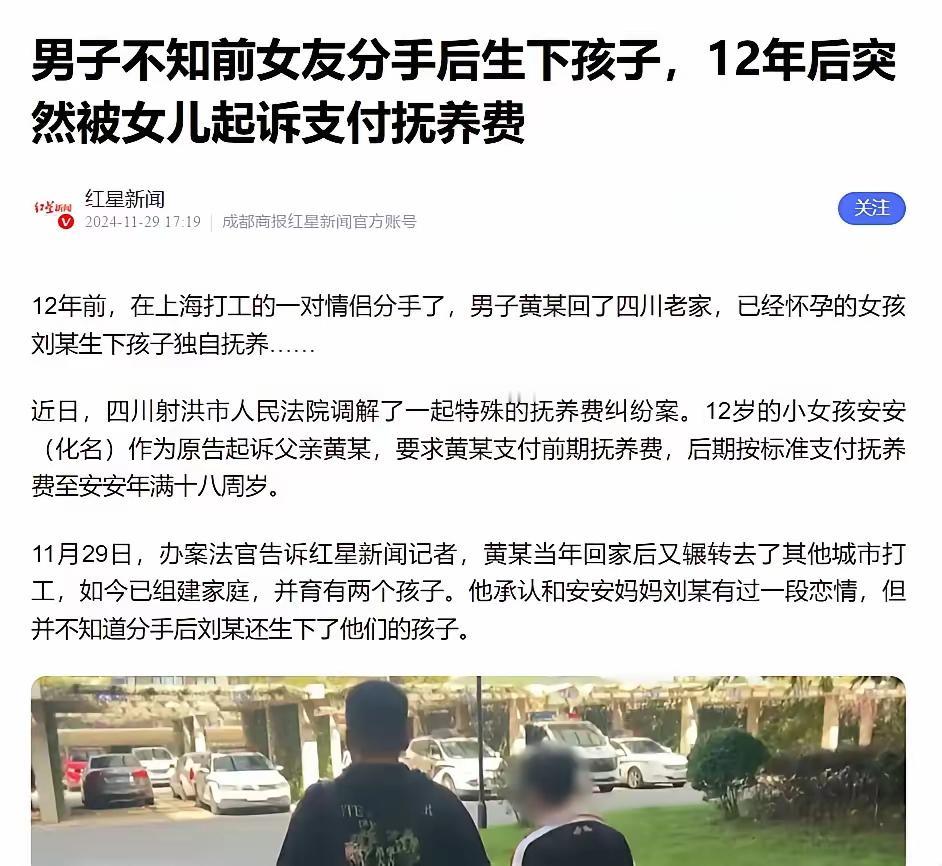 “12年不知情,突然冒出个12岁女儿!上海分手女友一纸诉状,男子崩溃:我连她怀孕都不知道!” 在上海打拼的黄某,曾以为自己只是结束了一段普通的同居恋情。他万万没想到,这场看似平静的分手,竟在12年后掀起滔天巨浪——一个素未谋面的12岁女儿,一笔高达11.5万元的抚养费账单,以及每月1500元的长期支付义务,彻底打碎了他原本安稳的生活。 事情要从12年前说起。那时的黄某,怀揣梦想来到上海,希望在这座繁华都市闯出一片天地。几年下来,事业却始终不温不火。眼看年岁渐长,思乡心切,他决定回四川老家重新开始,开个小店、成家立业,过踏实日子。 临行前,他满怀期待地向同居女友刘某提出:“跟我一起回四川吧,我们在老家安家,好好过日子。”然而,刘某毫不犹豫地拒绝了。她早已习惯了上海的生活节奏,有稳定的工作、熟悉的朋友圈,不愿为了一个不确定的未来,放弃眼前的一切。 两人僵持不下,最终选择和平分手。没有争吵,没有纠缠,甚至没有留下联系方式。黄某收拾行李,独自踏上归途,心中虽有遗憾,却也释然。他以为,这段感情就此画上句号。 回到四川后,黄某勤恳工作,娶妻生子,组建了新的家庭。生活虽不富裕,但温馨安稳。12年来,他从未再联系刘某,也从未想过,当年那段短暂的同居关系,竟埋下了一个惊天秘密。 而另一边,刘某在分手时其实已经怀上了黄某的孩子。面对突如其来的怀孕,她一度犹豫,但最终决定独自生下女儿,取名“安安”。从此,她一人扛起养育重担——白天上班赚钱,晚上照顾孩子,孩子的学费、医药费、兴趣班费用,全靠她微薄的工资支撑。 起初,她咬牙坚持,不愿打扰黄某的生活。可随着安安逐渐长大,教育和医疗开支如滚雪球般增长。到了孩子12岁那年,刘某实在无力承担,终于鼓起勇气,以女儿安安的名义,将黄某告上法庭,要求其支付自出生以来的抚养费及后续生活费用。 当法院传票送到黄某手中时,他整个人都懵了。“我有个12岁的女儿?”他反复确认,不敢相信自己的耳朵。庭审现场,他情绪激动地表示:“我不是逃避责任,是真的完全不知情!分手后我们彻底断联,她从未告诉我怀孕的事,我连孩子出生都不知道!” 黄某承认亲子关系,愿意承担父亲的责任,但他提出异议:既然自己12年毫不知情,从未参与孩子的成长,是否应酌情减免此前的抚养费用?而刘某态度坚决:“你是孩子的亲生父亲,法律明确规定父母有抚养义务,无论你知不知情,都不能推卸责任。孩子不能因为你的‘不知道’就失去应有的保障。” 案件一度陷入僵局。法官多次组织调解,耐心向双方释法明理。最终,在法院主持下,双方达成和解协议:黄某一次性支付安安12岁前的抚养费、医疗费等共计11.5万元;自判决生效起,每月支付1500元抚养费,直至安安年满18周岁。 消息传出,引发网友热议。有人同情黄某:“被蒙在鼓里12年,突然背负巨额债务,换谁都不好受。”也有人支持刘某:“单亲妈妈太难了,孩子是无辜的,父亲必须担责。”更有法律人士指出,根据《民法典》第一千零七十一条,非婚生子女享有与婚生子女同等的权利,生父不得以“不知情”为由拒绝履行抚养义务。 这起案件不仅是一场家庭纠纷,更折射出现实中无数非婚生育背后的法律与伦理困境。许多人在分手时草率处理感情,却未意识到可能埋下多年后的隐患。专家呼吁:无论是否结婚,一旦涉及生育,双方都应明确沟通、保留证据,必要时通过法律途径确认亲子关系与抚养安排,避免日后对子女造成二次伤害。 如今,黄某已开始履行判决。他坦言,虽然经济压力骤增,但既然确认了父女关系,就会尽力弥补缺失的父爱。而安安也在母亲陪伴下,第一次知道了“爸爸”的存在。尽管相见尚早,但法律的介入,至少为这个女孩争取到了应有的成长保障。 人生没有如果,但法律有底线。这场跨越12年的“父女认亲”,既是一记警钟,也是一次救赎——提醒世人:感情可以结束,但责任不能缺席;孩子不是负担,而是血脉相连的未来。