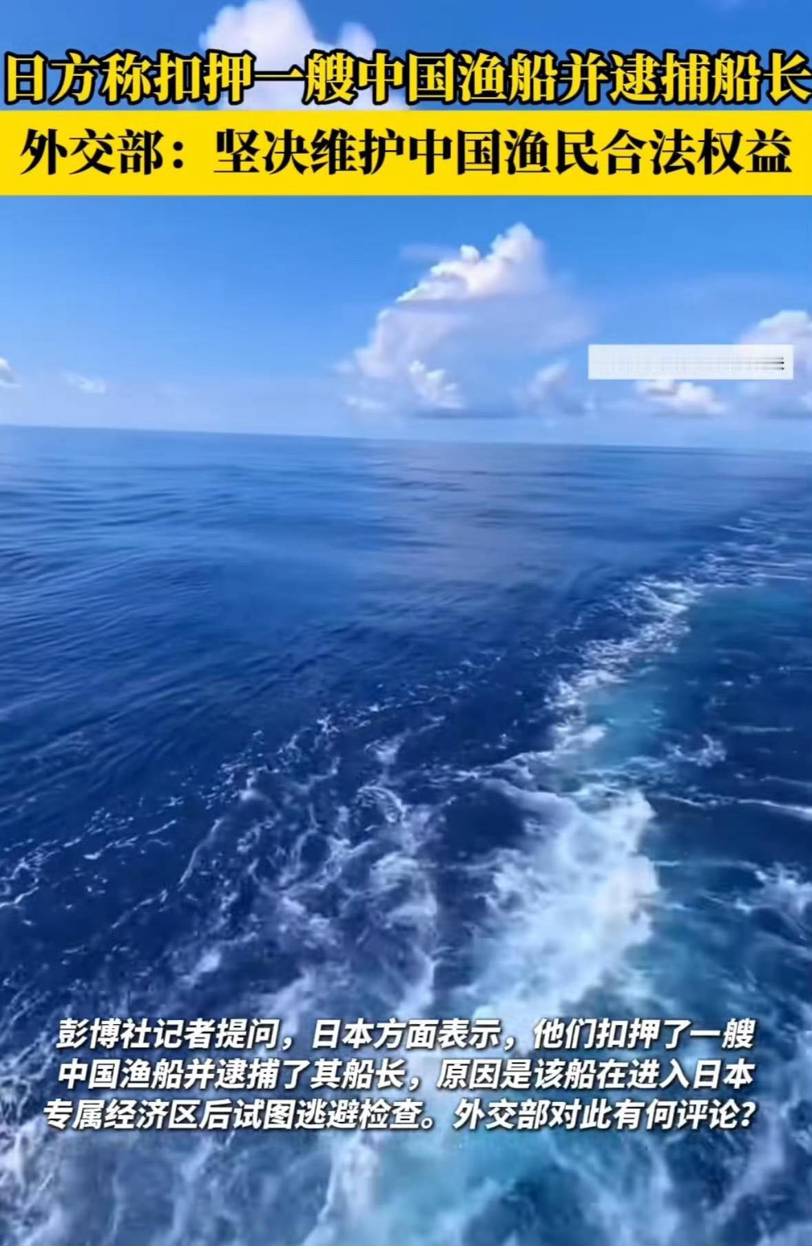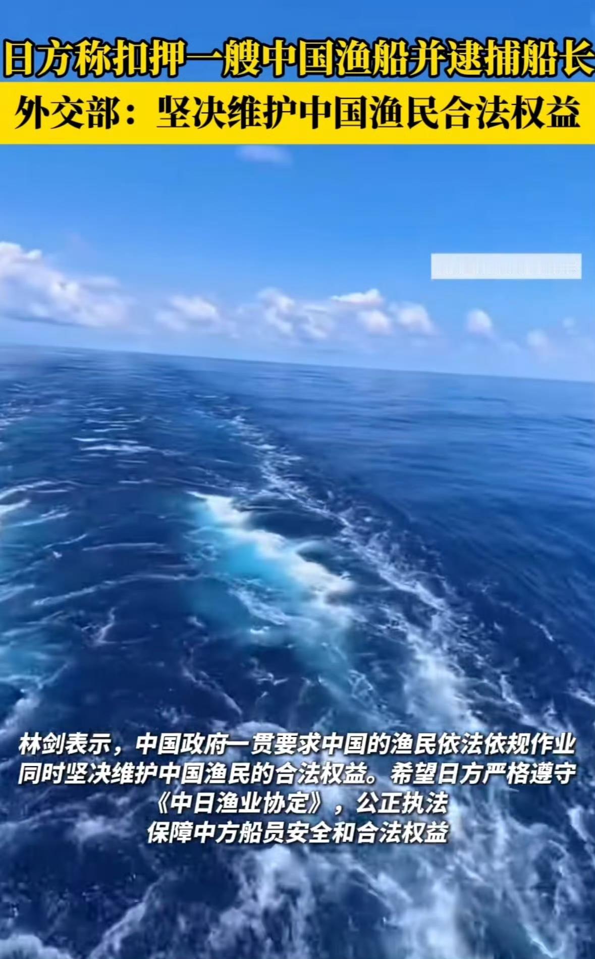 日本动手了!该来的终究会来! 2月13日,据日本共同社报道,日本水产厅九州渔业调整事务所当天通报称,12日在长崎县五岛市女岛西南约170公里的海域,日本水产厅以涉嫌无视停船命令并驾船逃逸为由,强行扣押一艘载有11人的中国大陆渔船,并逮捕47岁的中国籍船长。 这是日本水产厅今年首次扣押外国渔船,也是自2022年以来首次针对中国大陆渔船采取此类行动。 日本此举极有可能是想借此制造紧张氛围,以实现其在海洋权益上的不合理诉求。但中国绝不会坐视不理,相关部门定会迅速行动,维护中国渔民的合法权益,捍卫国家的海洋主权。所以说,高市胜选,该来的都躲不掉,此次大概率是一种试探,一是给中国春节添堵,二是对中国公开警告。没想到抗日战争胜利80周年后,我们仍在抗日的征途上。看来,我们必须对日本彻底清算,将抗日战争进行到底,彻底粉碎日本的图谋,直至日本彻底失败!