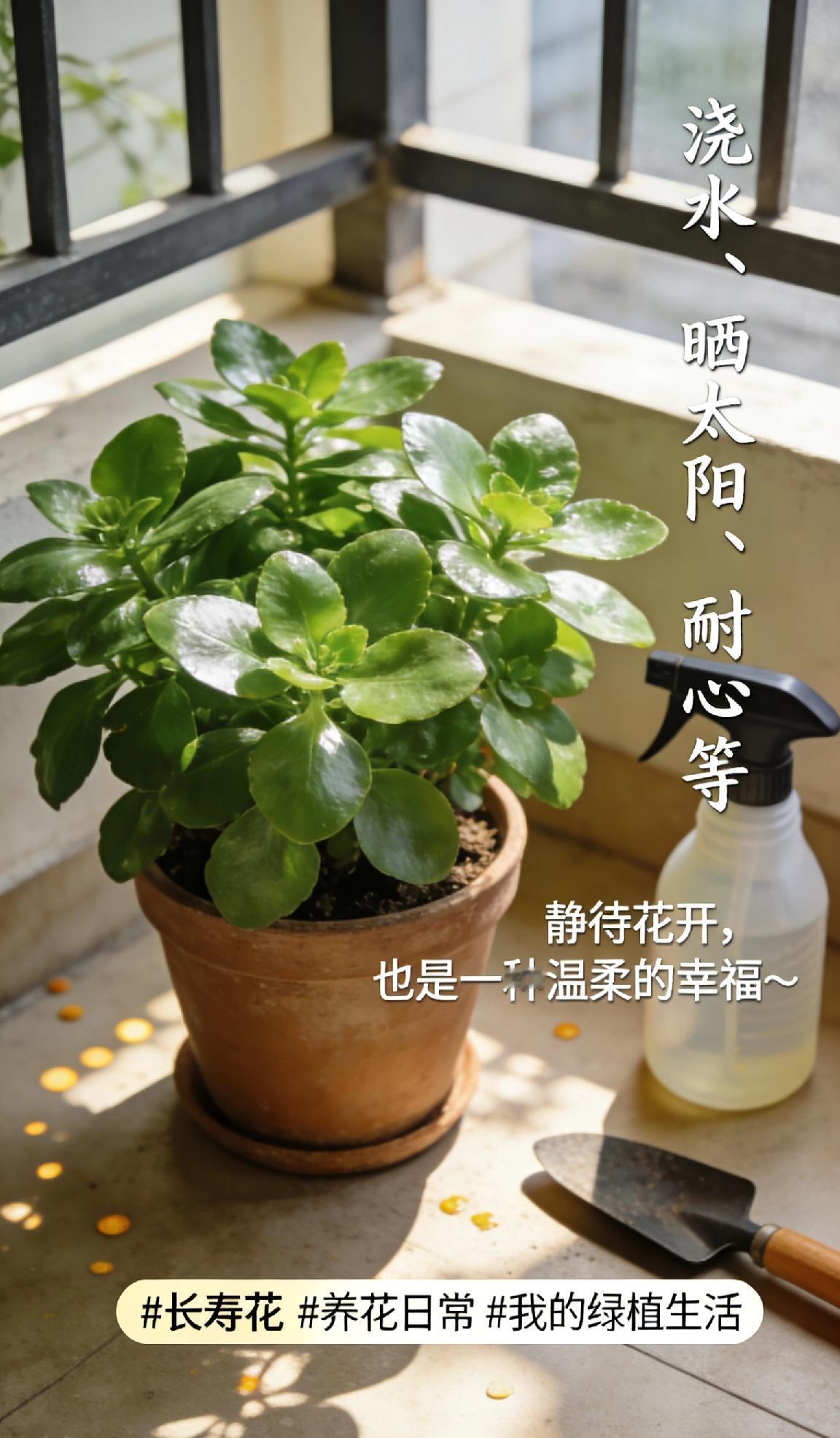 朋友们你家养长寿花了吗?我家养了长寿花,但是,还没有开花🌿 每天都盼着它冒花苞、开爆盆, 浇水、晒太阳、耐心等, 就想看看那一团团热闹的小花朵。 养花大概就是这样吧, 慢一点也没关系, 静待花开,也是一种温柔的幸福~ 长寿花 养花日常 静待花开