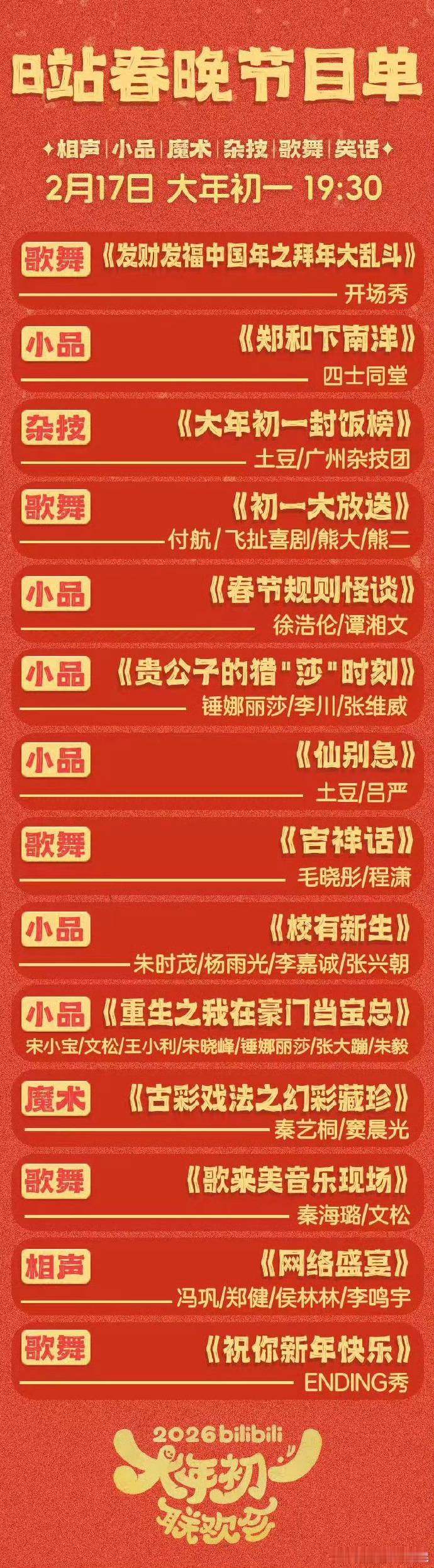 B站春晚节目单来了 终于等到 B 站春晚节目单,每个节目都各具特色、风格不重样,创意与看点兼备,多样的设定让人看得过瘾,就等大年初一准时上线了 B站大年初一联欢会