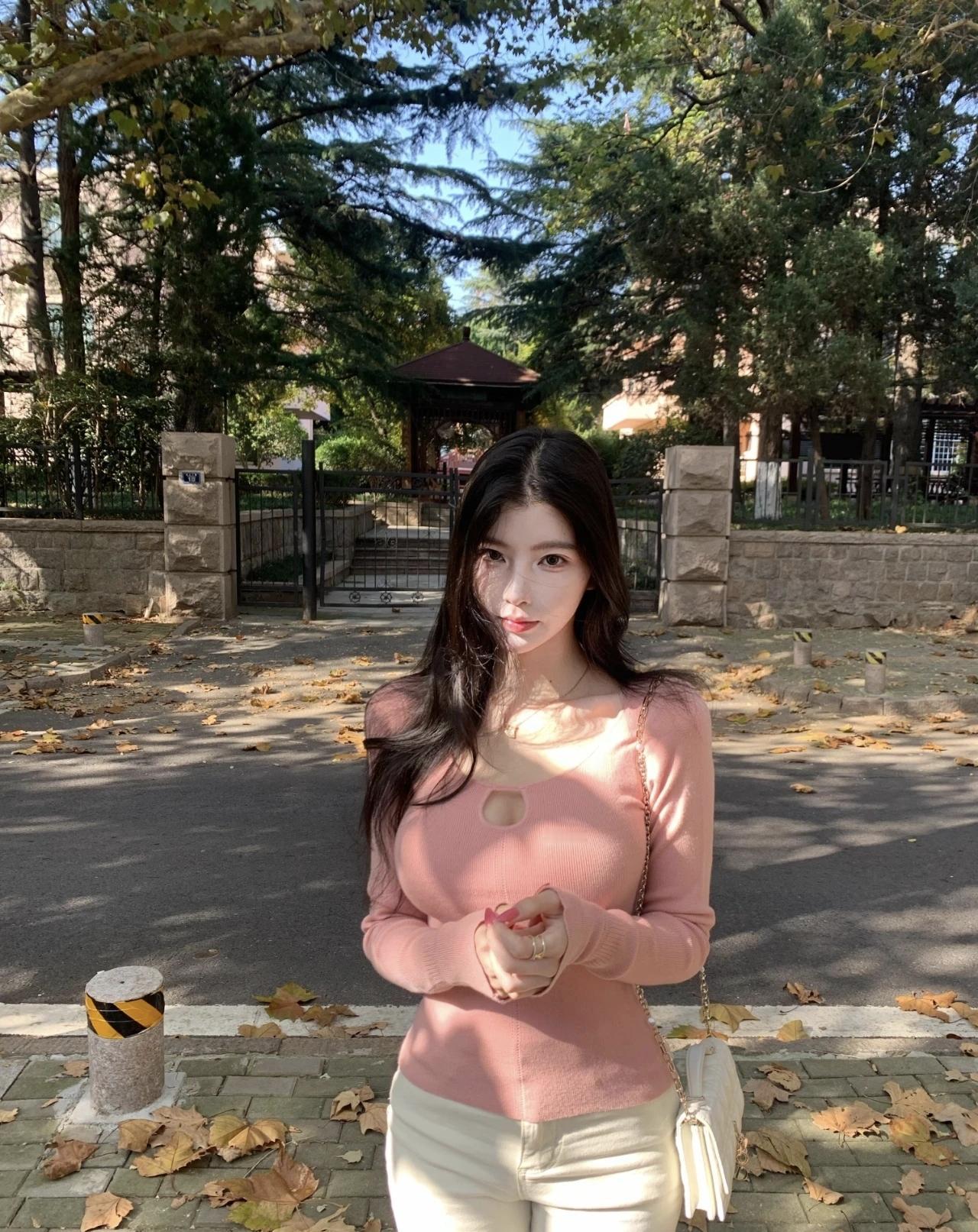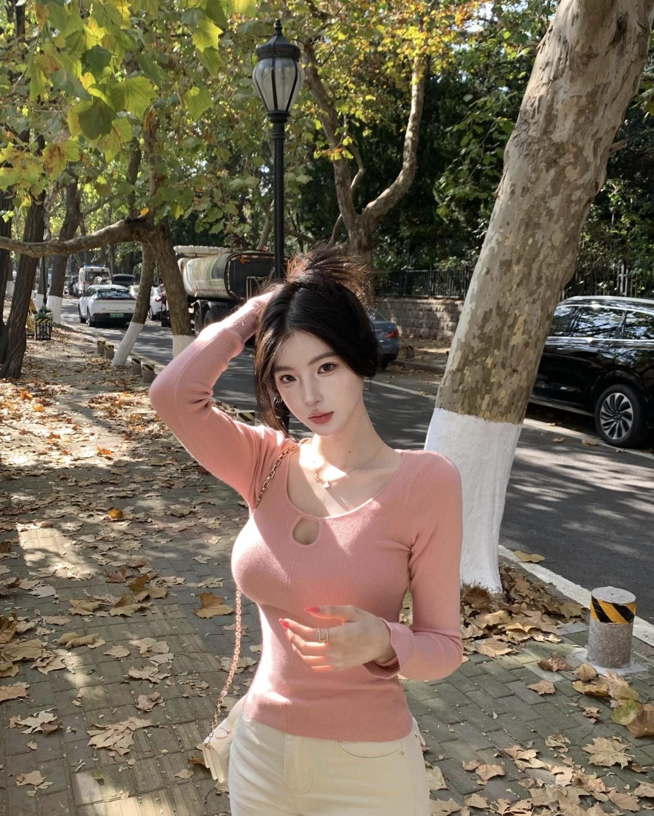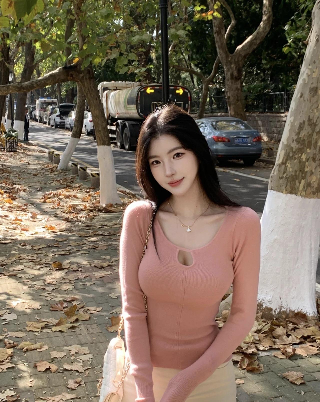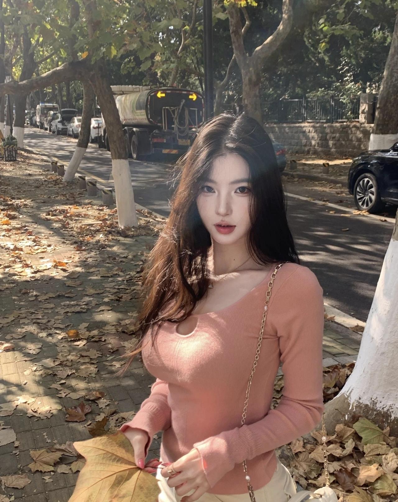 秋日漫步,落叶飘零,少女与枫叶的浪漫邂逅。