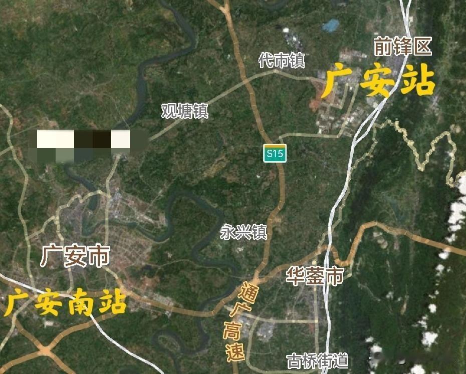 一个城市有两个高铁站很常见,但像广安这样的不常见。广安站并不在主城区,而是在东边30公里外的前锋区,交通上并不方便。主城区也有一个车站,叫广安南站。一般来说,主城区的车站都会占据取名、选址的优势,为啥广安站的名头会被远郊的前锋区占用呢?