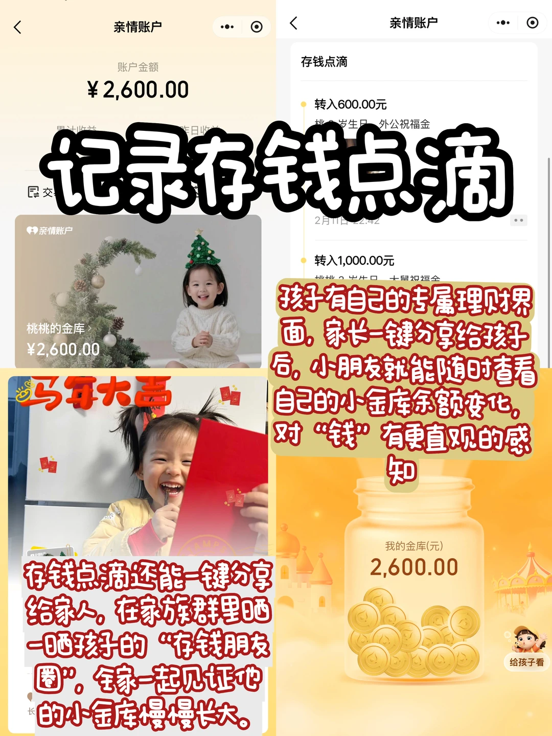 - 最打动我的是它的图文记录功能:每一笔钱 —— 不管是压岁祝福、生日红包还是长辈的零花钱,都能附上照片和小故事,让存钱不再是冰冷的数字,而是变成孩子的成长相册📸❤️。