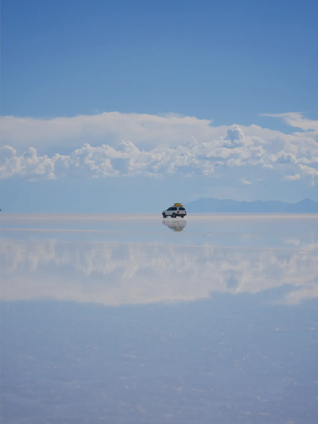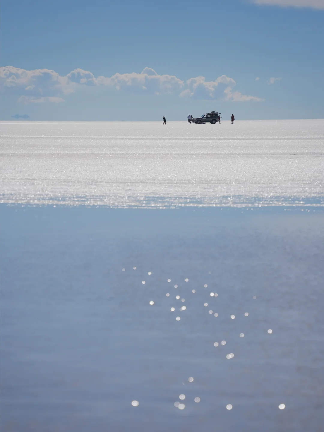 【时间】只有在雨季,即每年12月-4月能看到天空之镜,除此以外的时间这里就只有干旱的一片雪白盐田