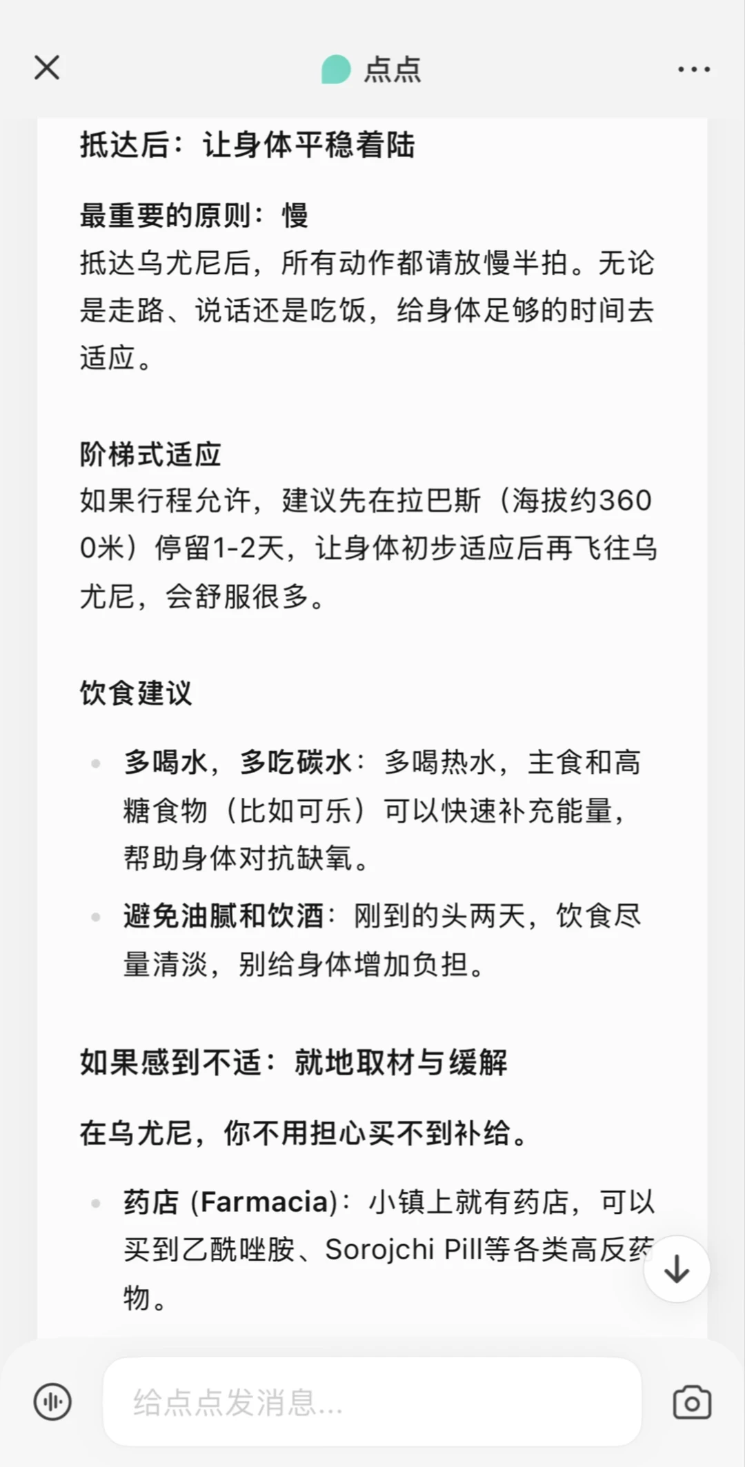【高反】3600的海拔其实没有那么夸张,适应一下就好了。行程之前我用AI点点做了好多预防高反的准备,到了以后一点高反症状都没有,感谢点点!