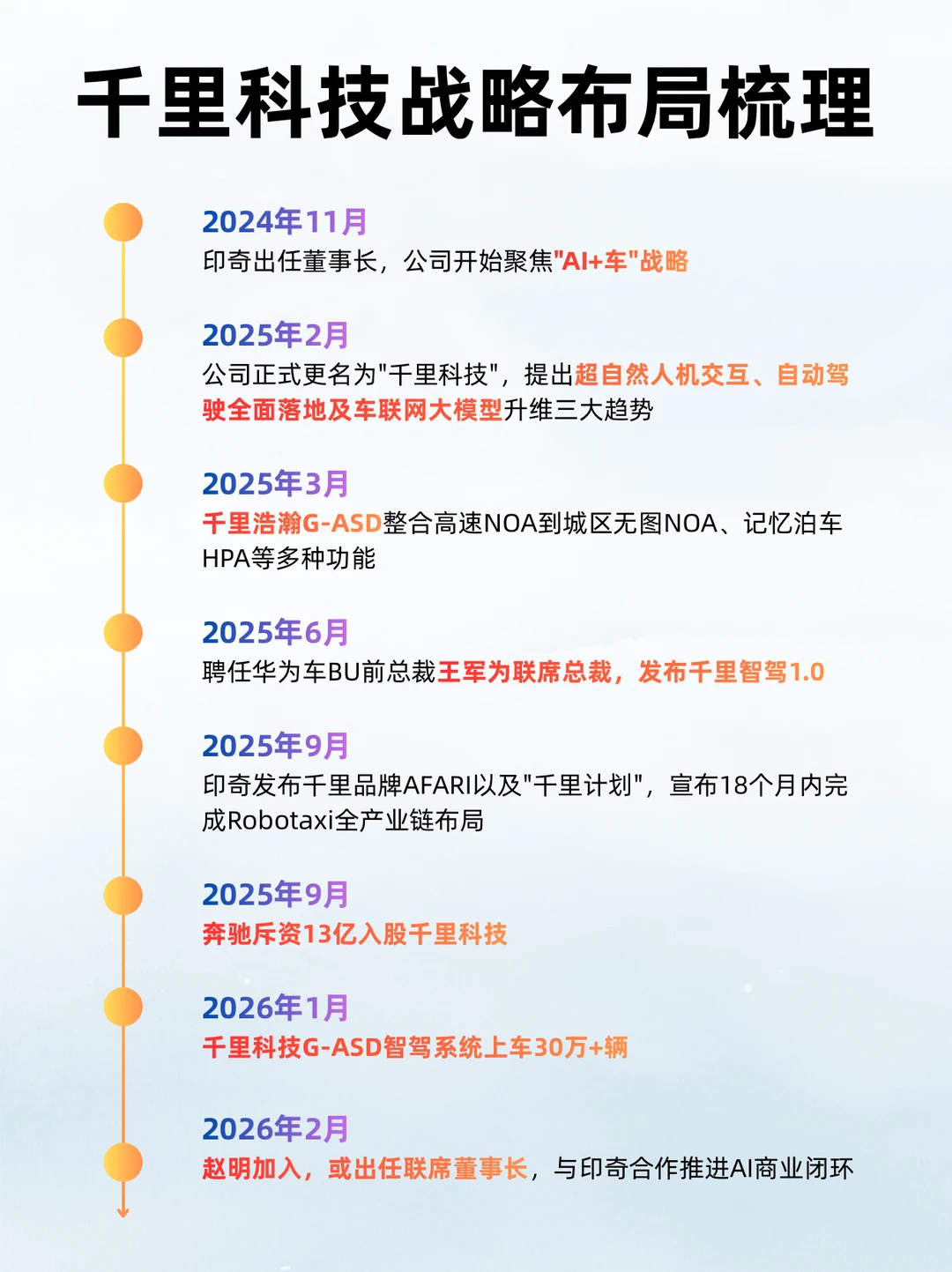 -2025年2月:公司正式更名为"千里科技",提出超自然人机交互、自动驾驶全面落地及车联网大模型升维三大趋势。