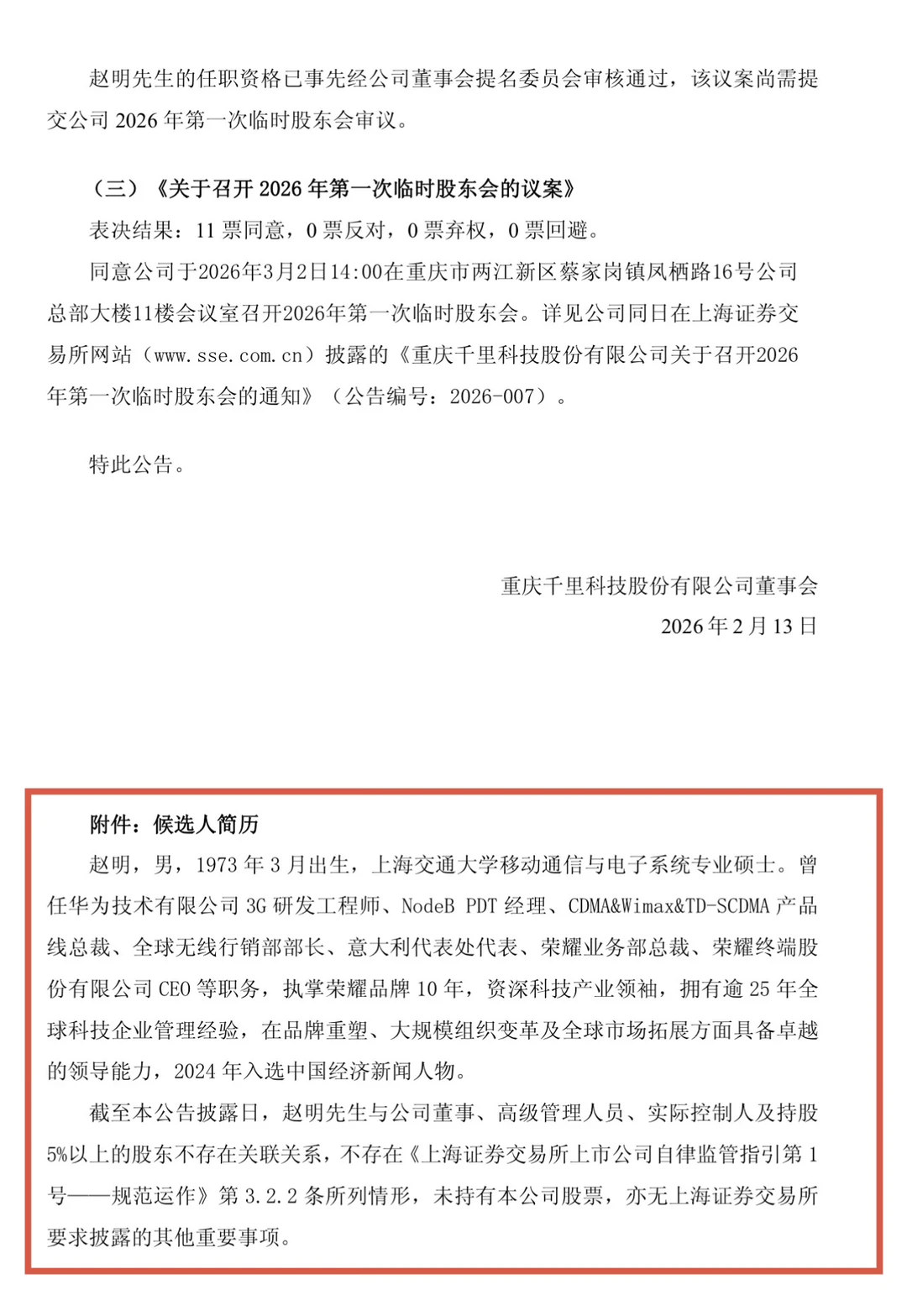 手机圈的朋友应该都比较清楚,赵明是真正打过硬仗的人。他加入千里,基本等于释放了这家公司进入商业化元年的信号。伴随港股上市进程,期待他能给千里带来更大的想象空间!