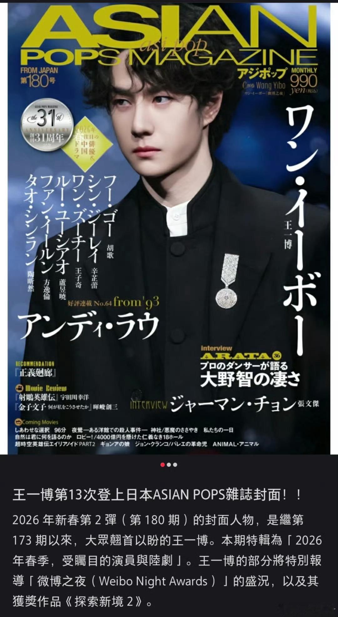 王一博是世界级的,13次登上了🇯🇵ASIANPOPS杂志封面!