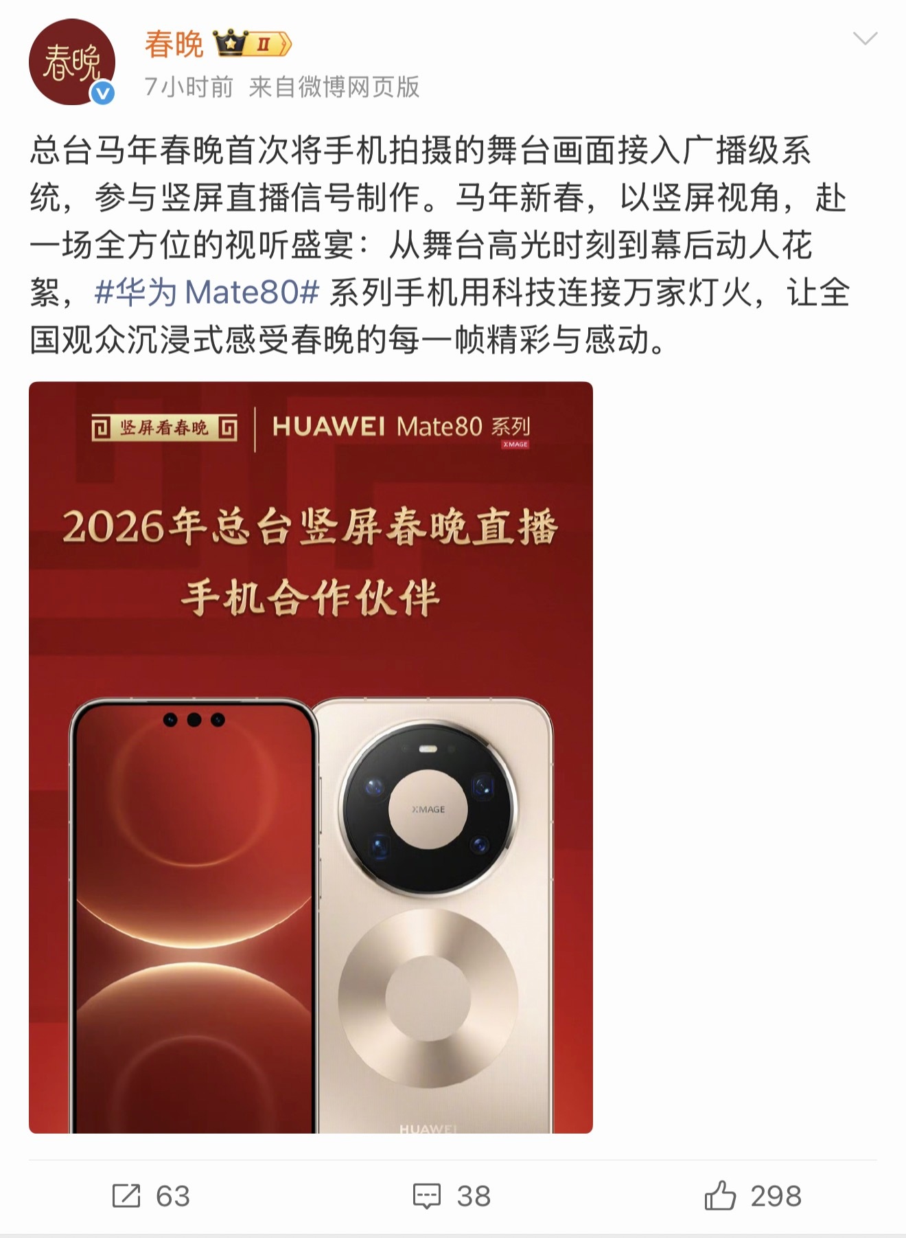 Mate80官宣春晚竖屏直播合作伙伴该说不说有点厉害,首次就是华为!