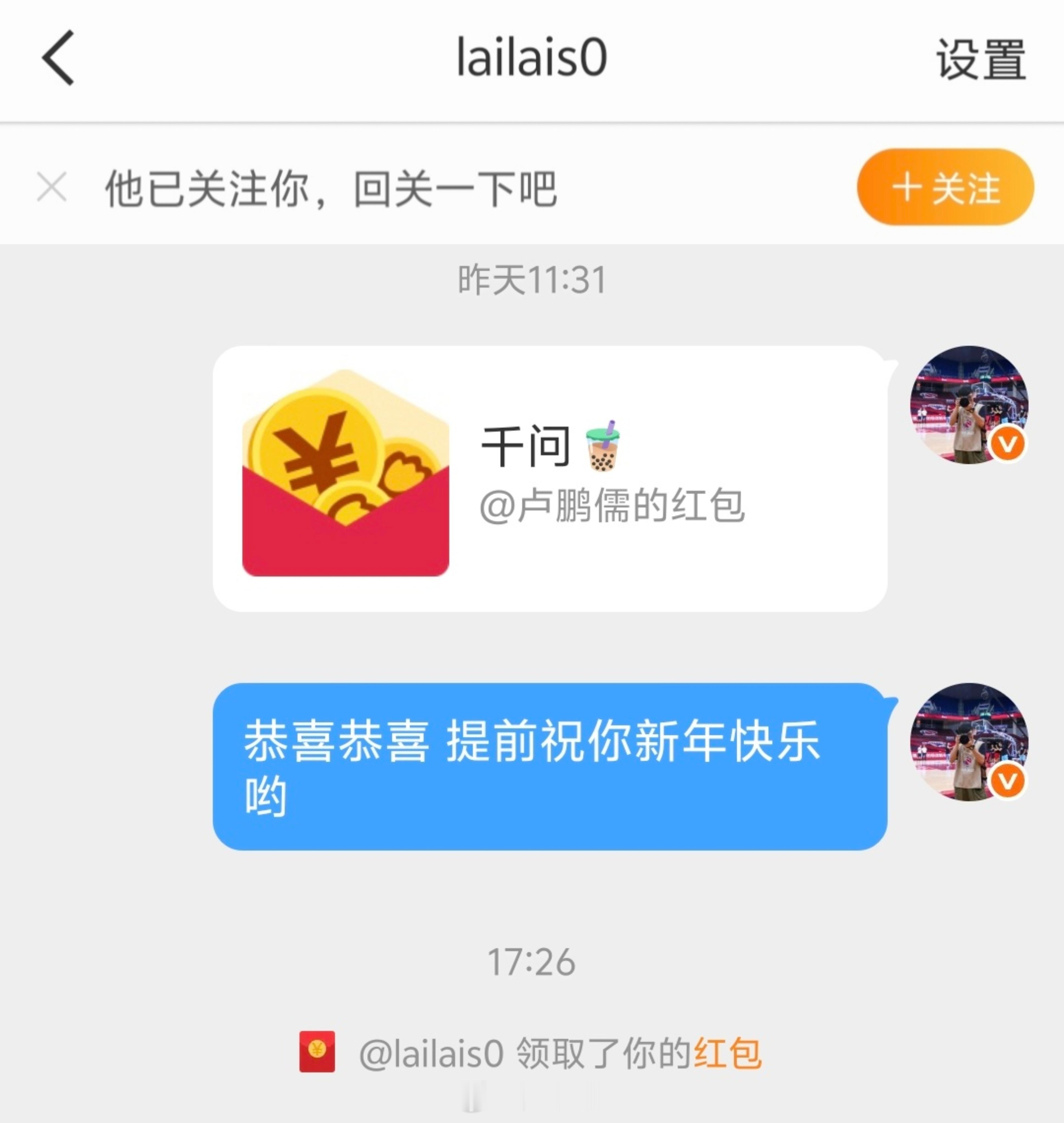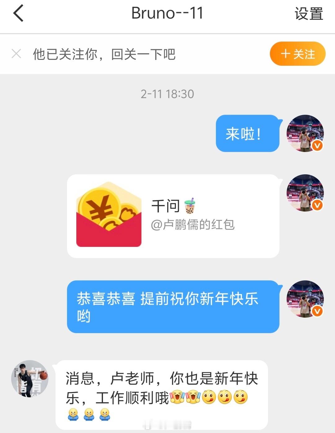恭喜五位鹏友中了🧋红包!新的一年万事顺遂小卢篮球世界