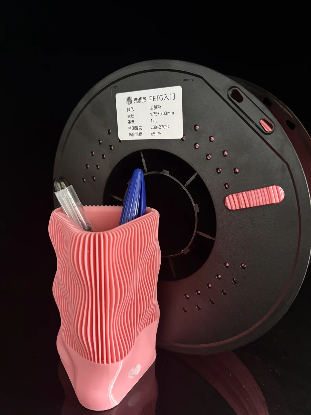 这卷是PETG 入门款耗材,这次主要用来打我这个小件(曲面造型笔筒 )。