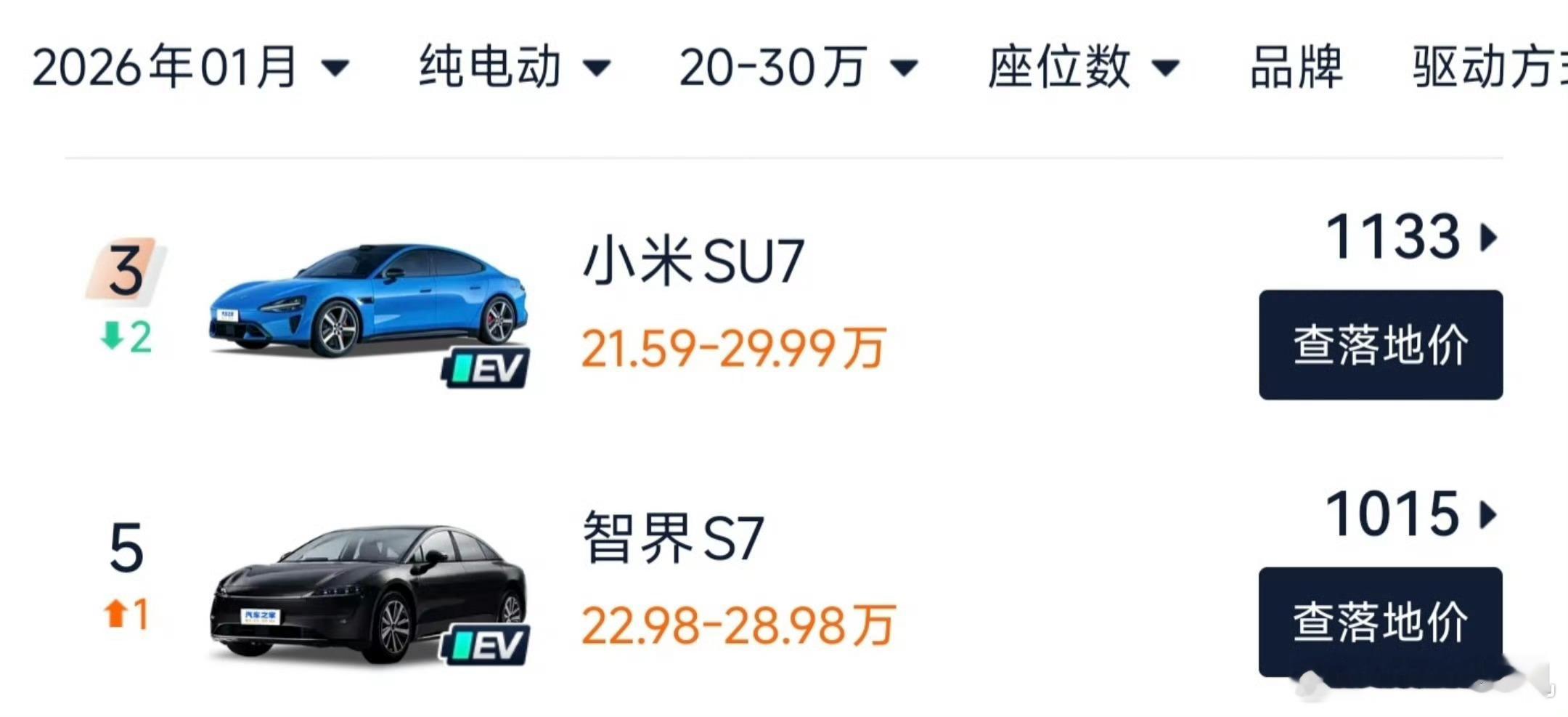 小米SU7上月销量仅1133颓势尽显,智界S7险超小米SU7。数码科技评论